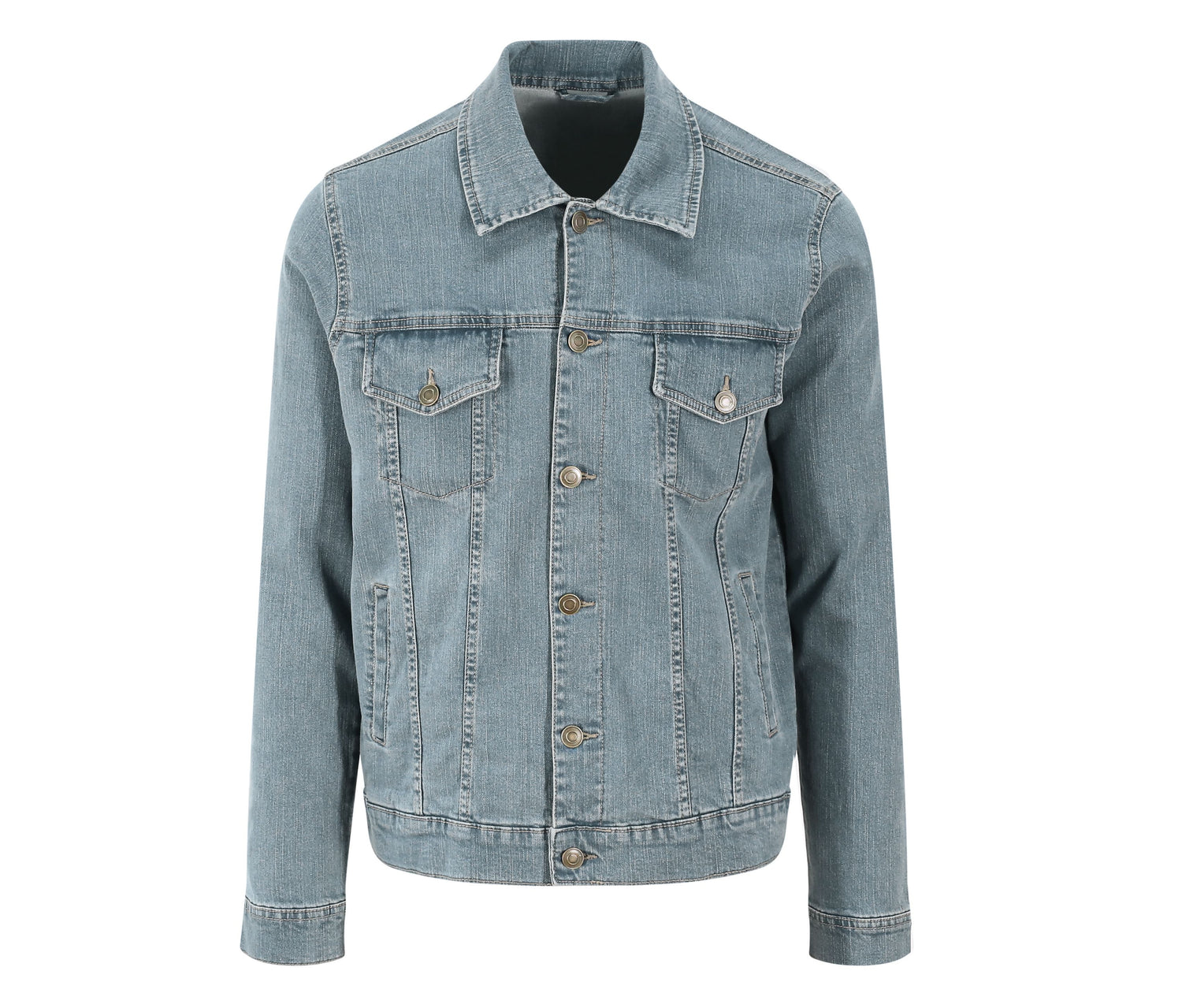 Modern fit. Stretch jeans. Decorative button on the cuffs. Hanging loop inside the collar.