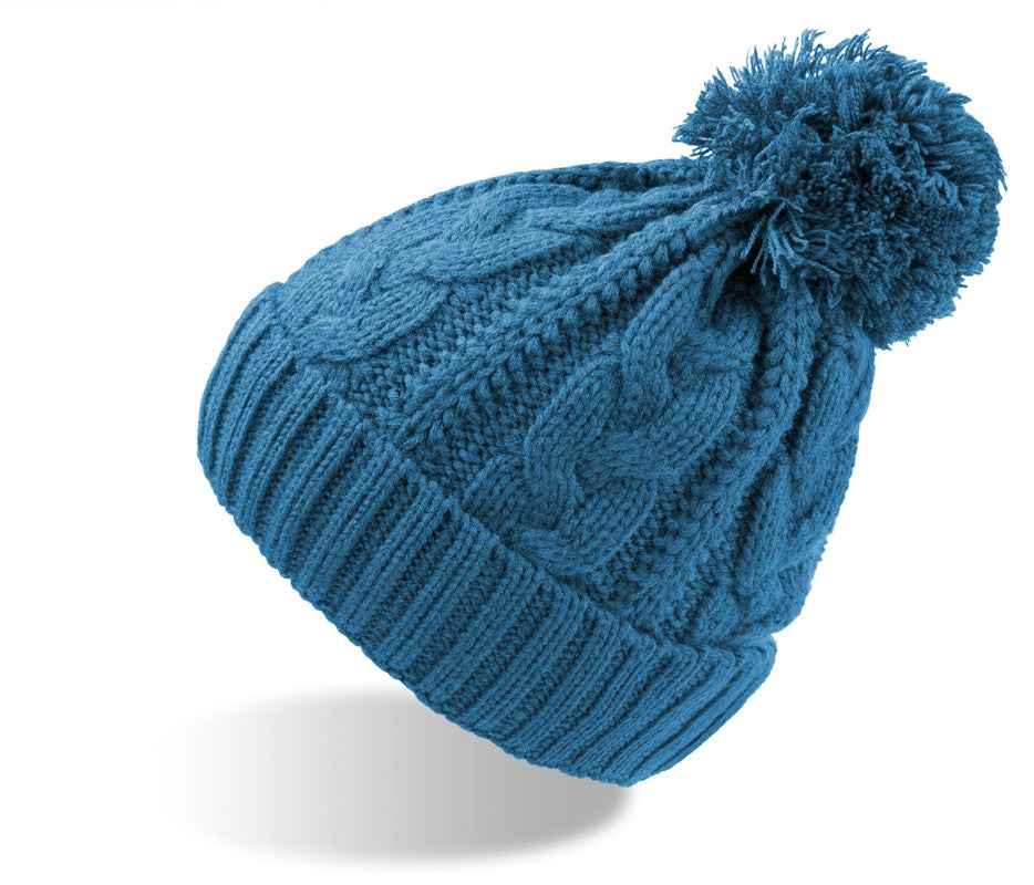Mütze mit Bommel und Rippenstrick. Nicht gefüttert. Innenband aus Fleece.
