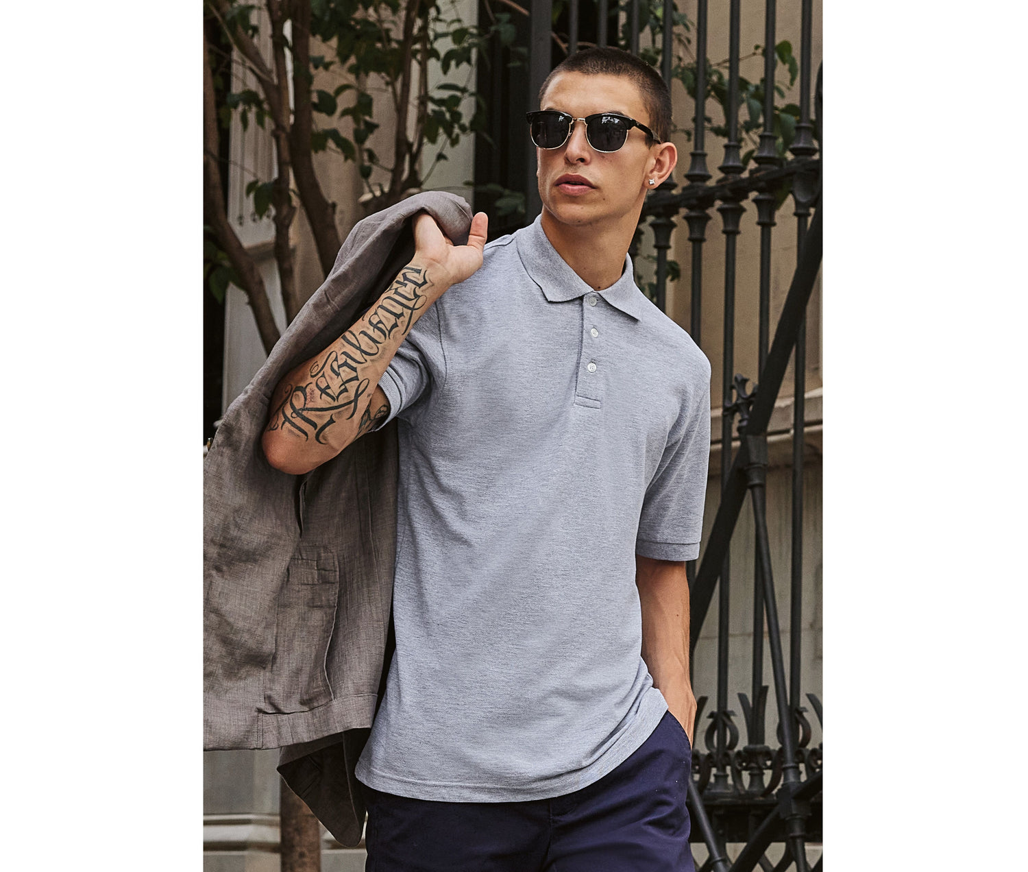 Piqué. Nackenband am Kragen. Knopfleiste mit 3 farblich passenden Knöpfen.
