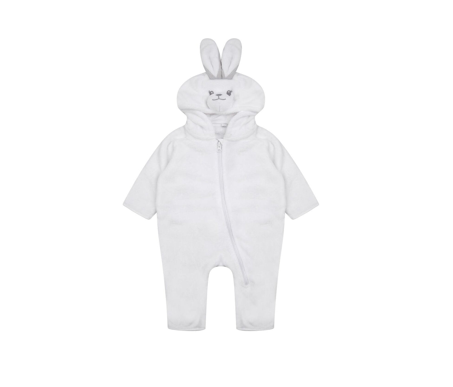 Baby-Overall. Durchgehender YKK Reißverschluss. Kapuze mit Hasenohren.