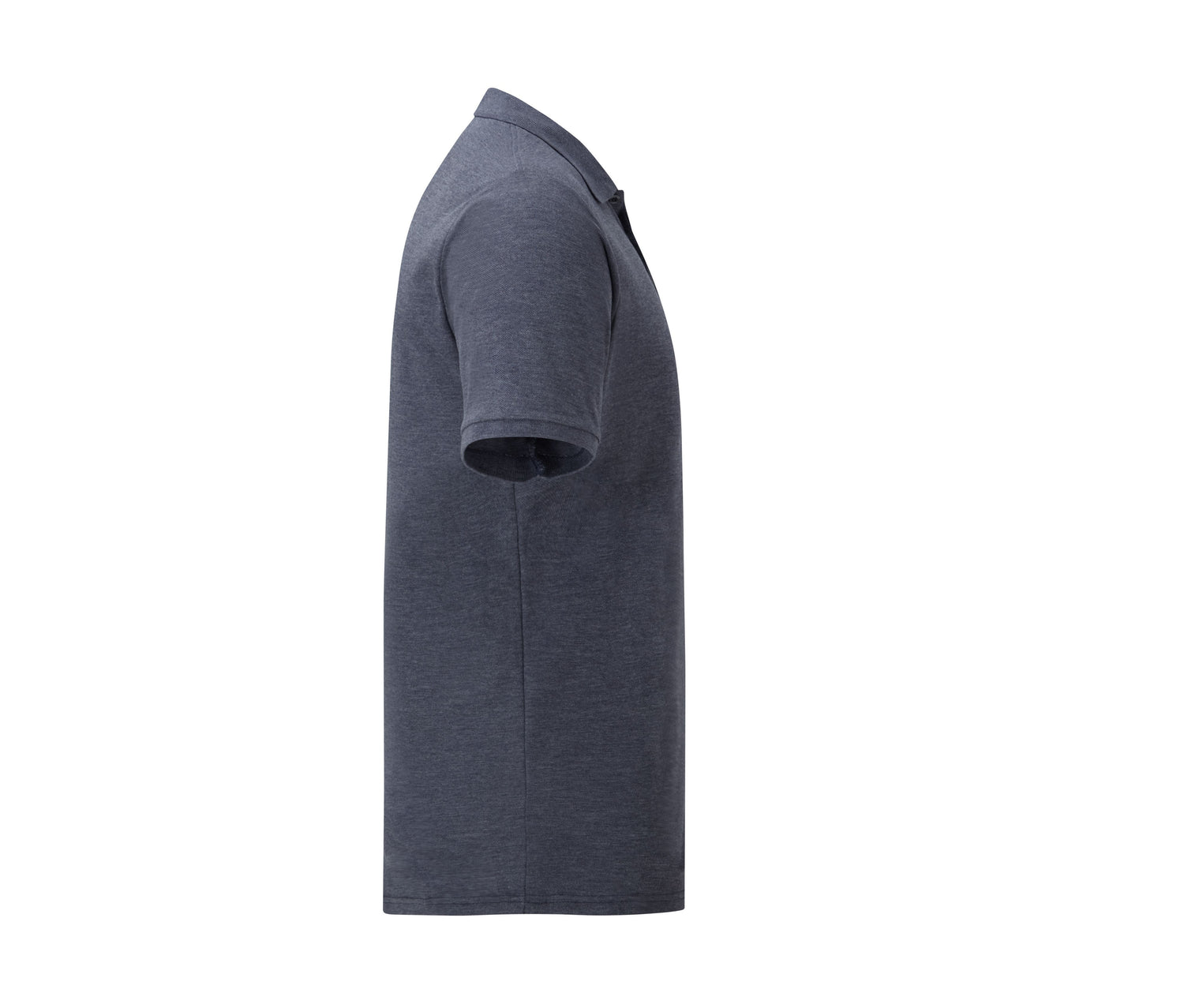 Piqué. 3 farblich passende Knöpfe. Rippenbündchen an Kragen und Ärmeln.