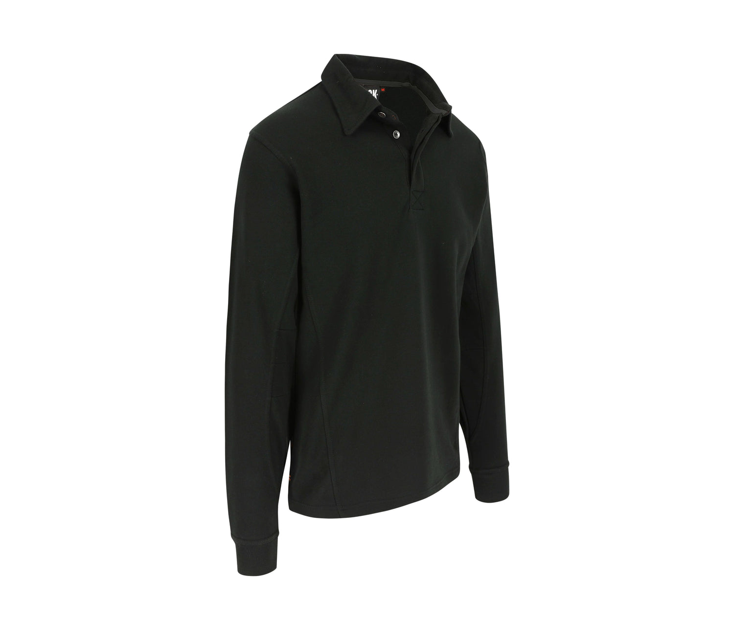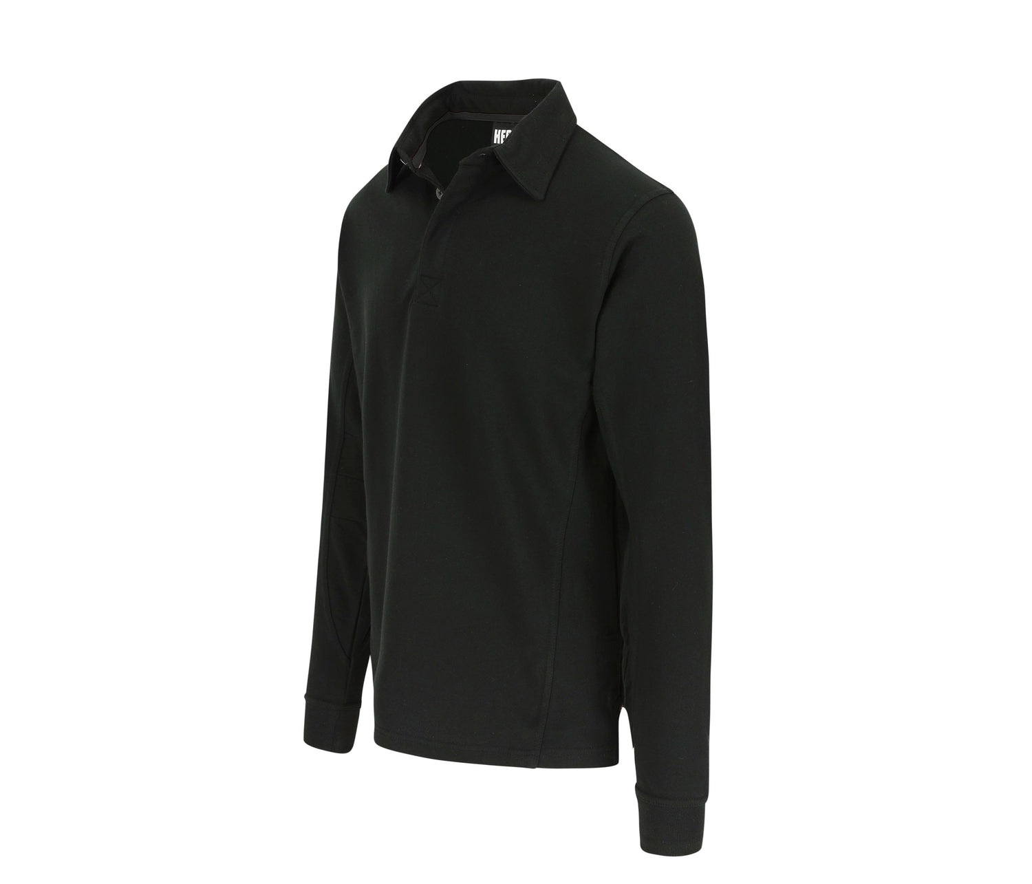 Langärmeliges Polohemd. Ärmelbündchen aus Rippstrick. Seitliche Schlitze.