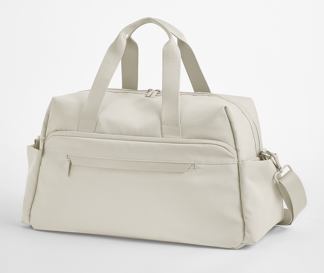 Hauptfach mit Reißverschluss. Drei Innentaschen im Hauptfach. Zwei große Seitentaschen. Handgepäcksgröße.