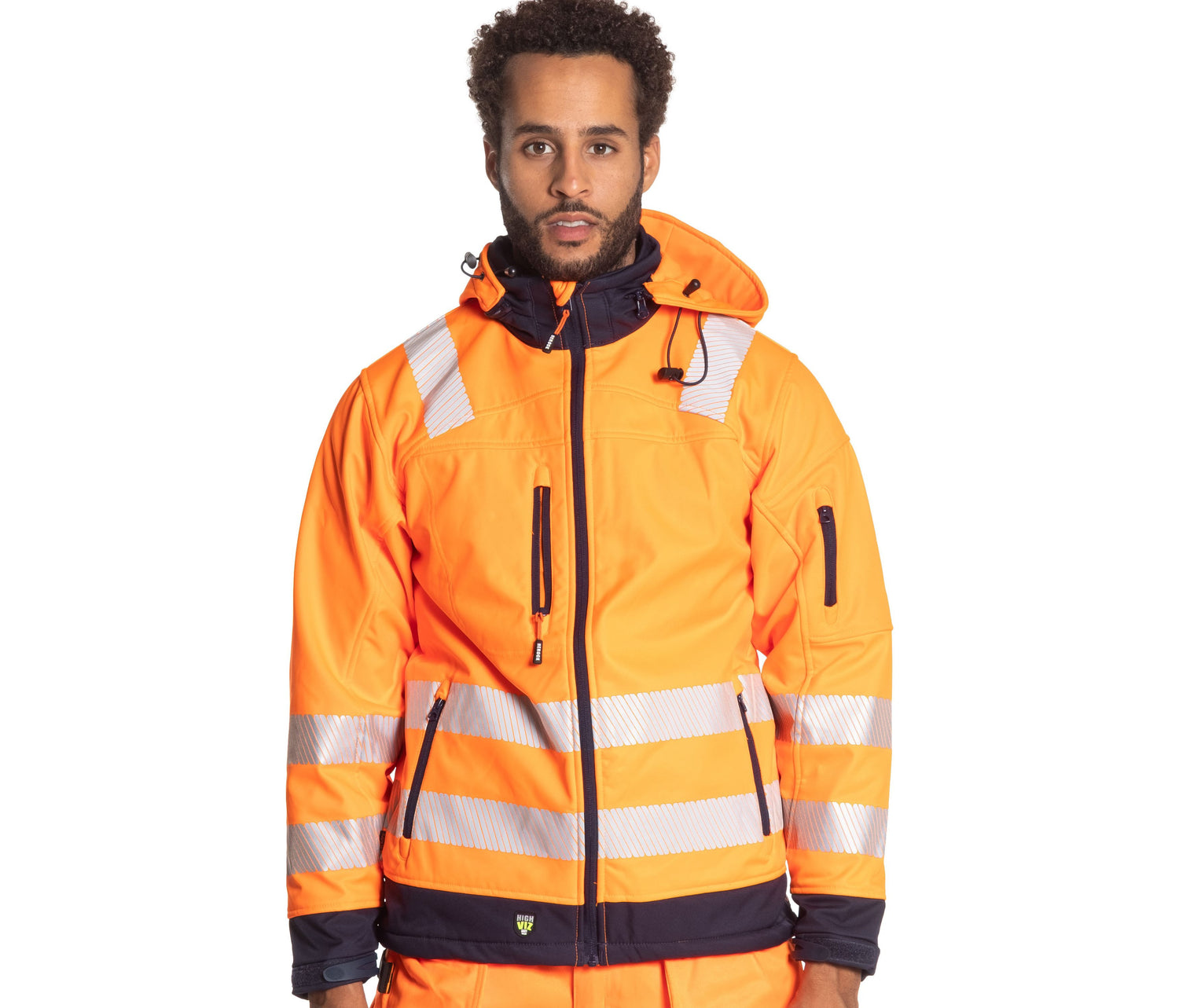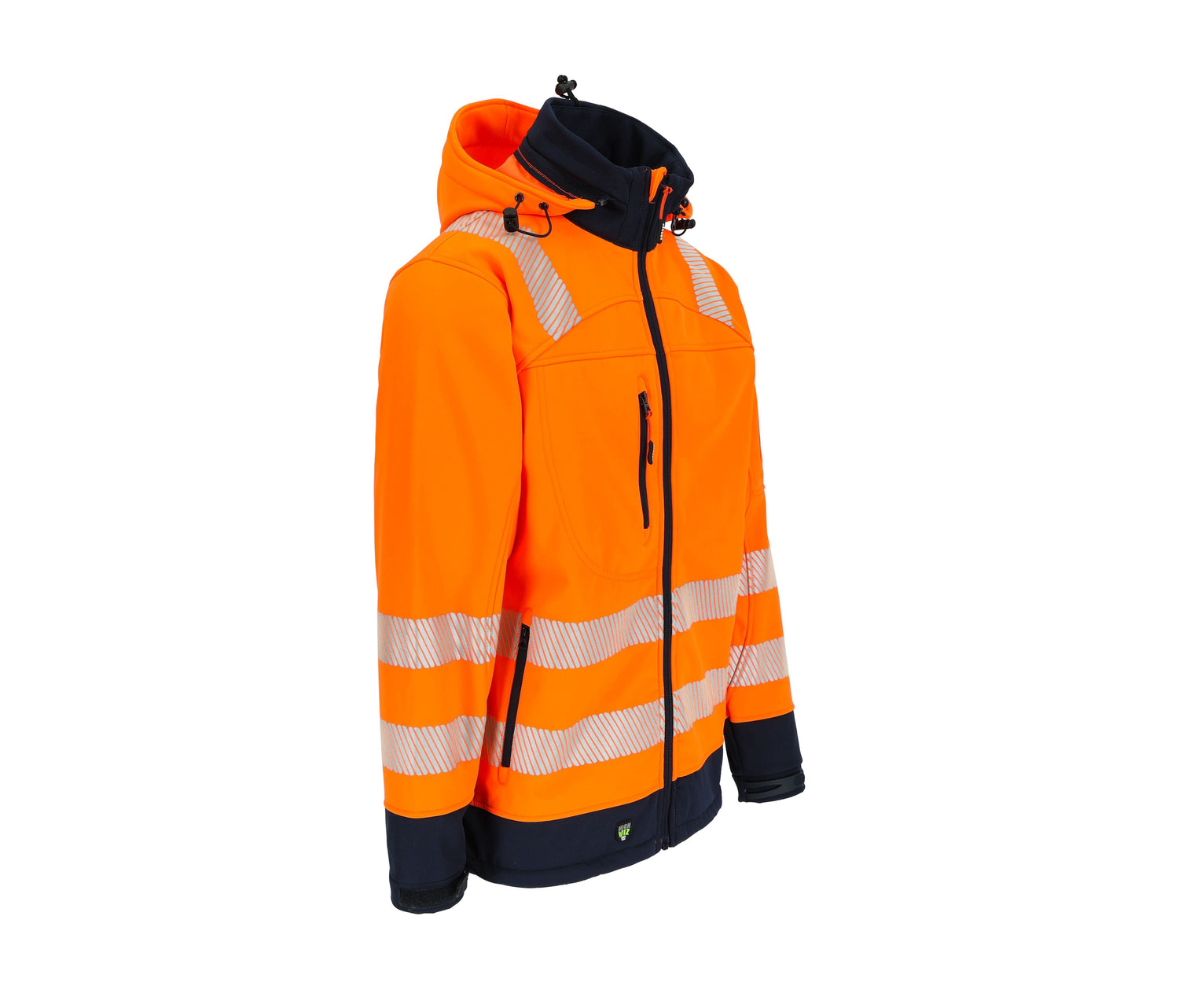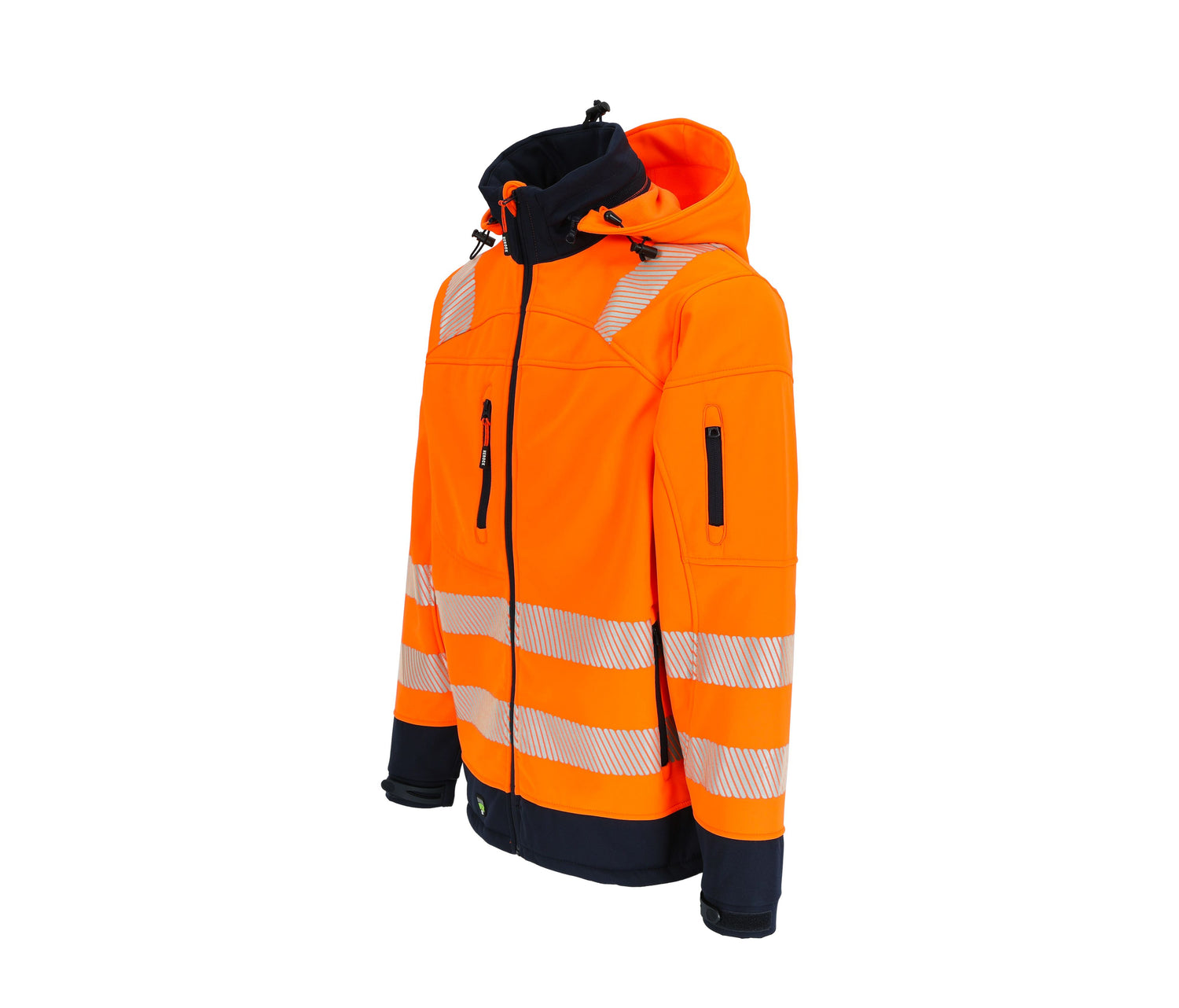 Hi Vis Softshelljacke, atmungsaktiv, wasserabweisend und winddicht. Zahlreiche Taschen. Reflektierende Streifen um den Körper, an den Ärmeln und an den Schultern. Abnehmbare Kapuze.