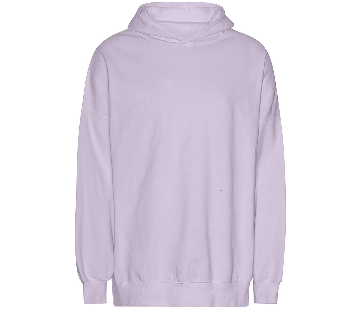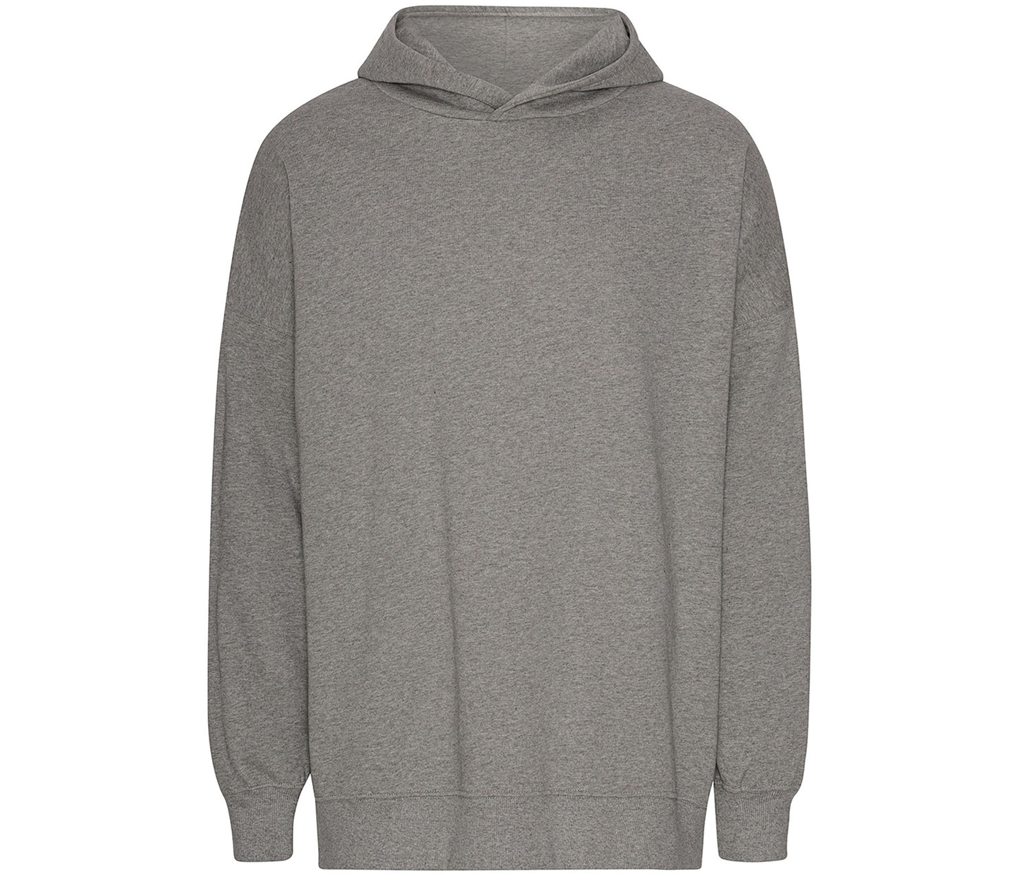 Herabhängende Schultern. Rippbündchen an Ärmeln und Taille. Gebürstete Innenseite. Doppelt gefütterte Kapuze.