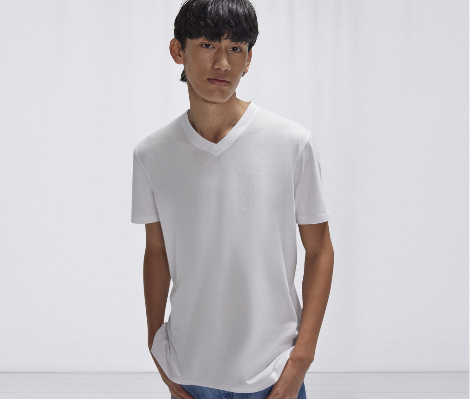 Mit Seitennähten. Moderner V-Ausschnitt. Nackenband auf der Rückseite für einen sauberen Abschluss.