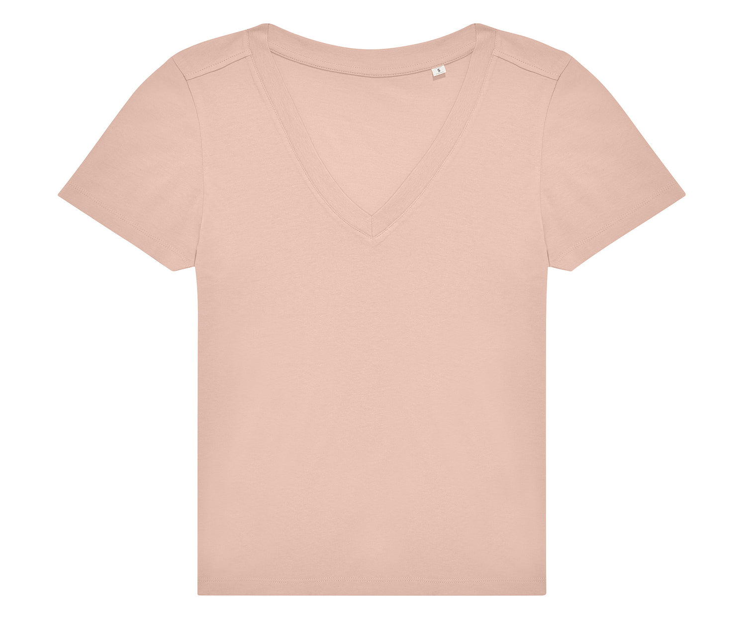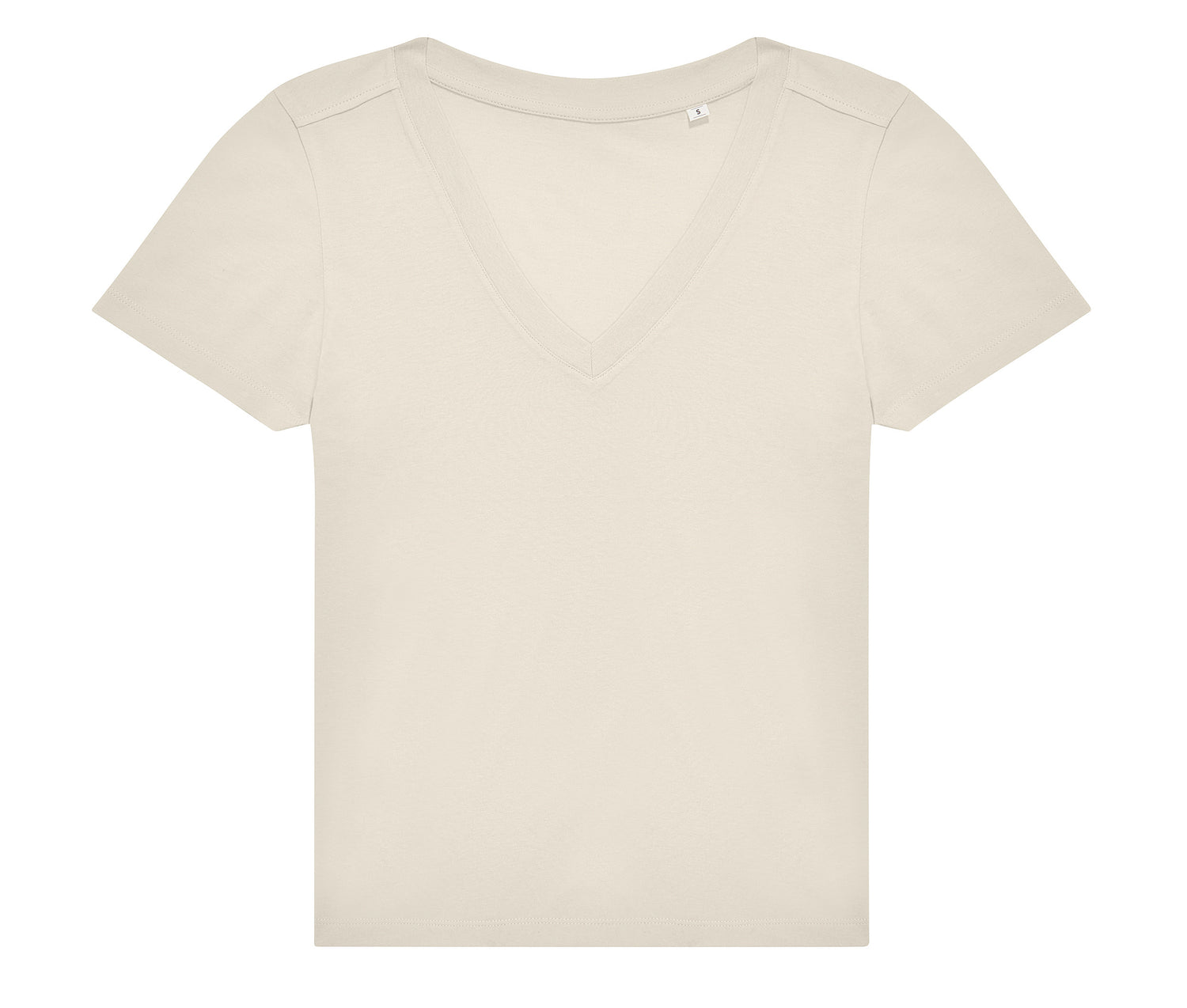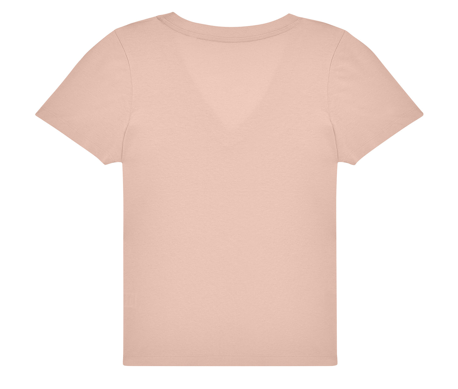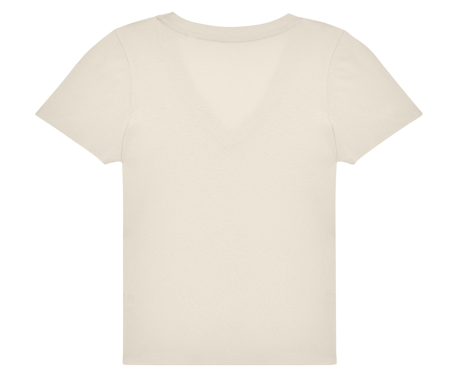 Klassische moderne Passform. Mit Seitennähten. Femininer Ausschnitt mit verbessertem V. Nackenband auf der Rückseite.