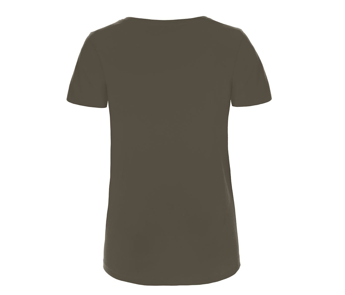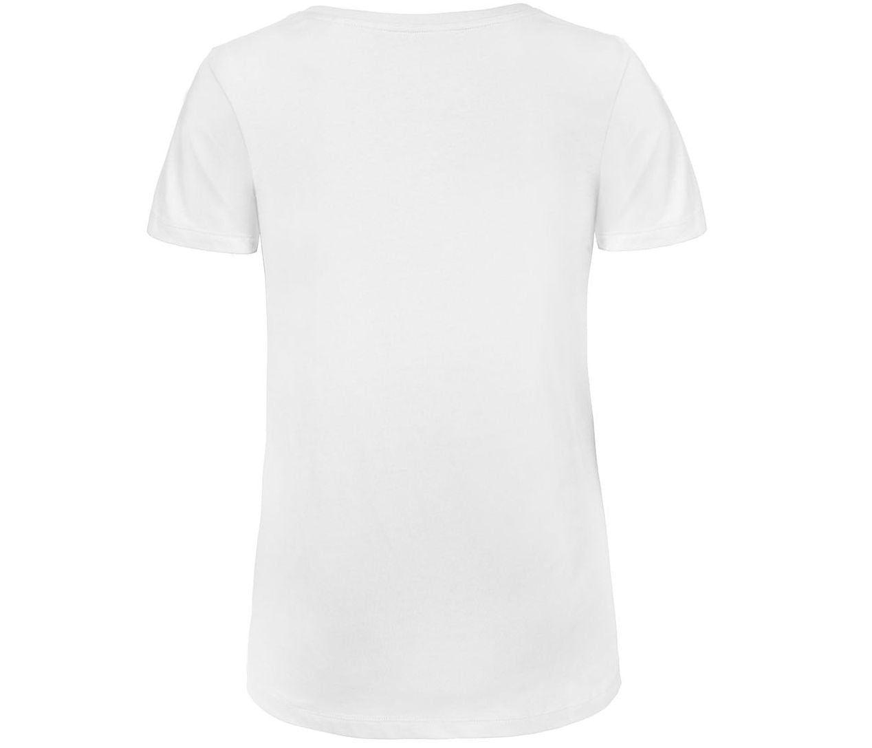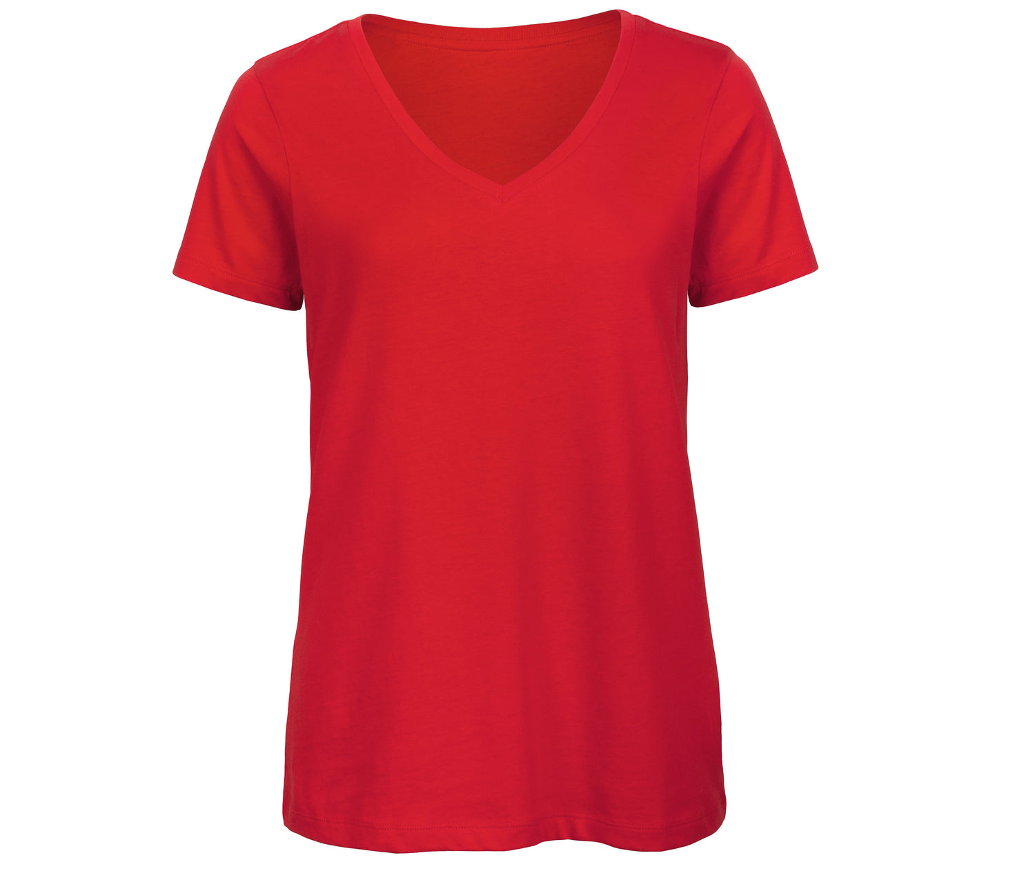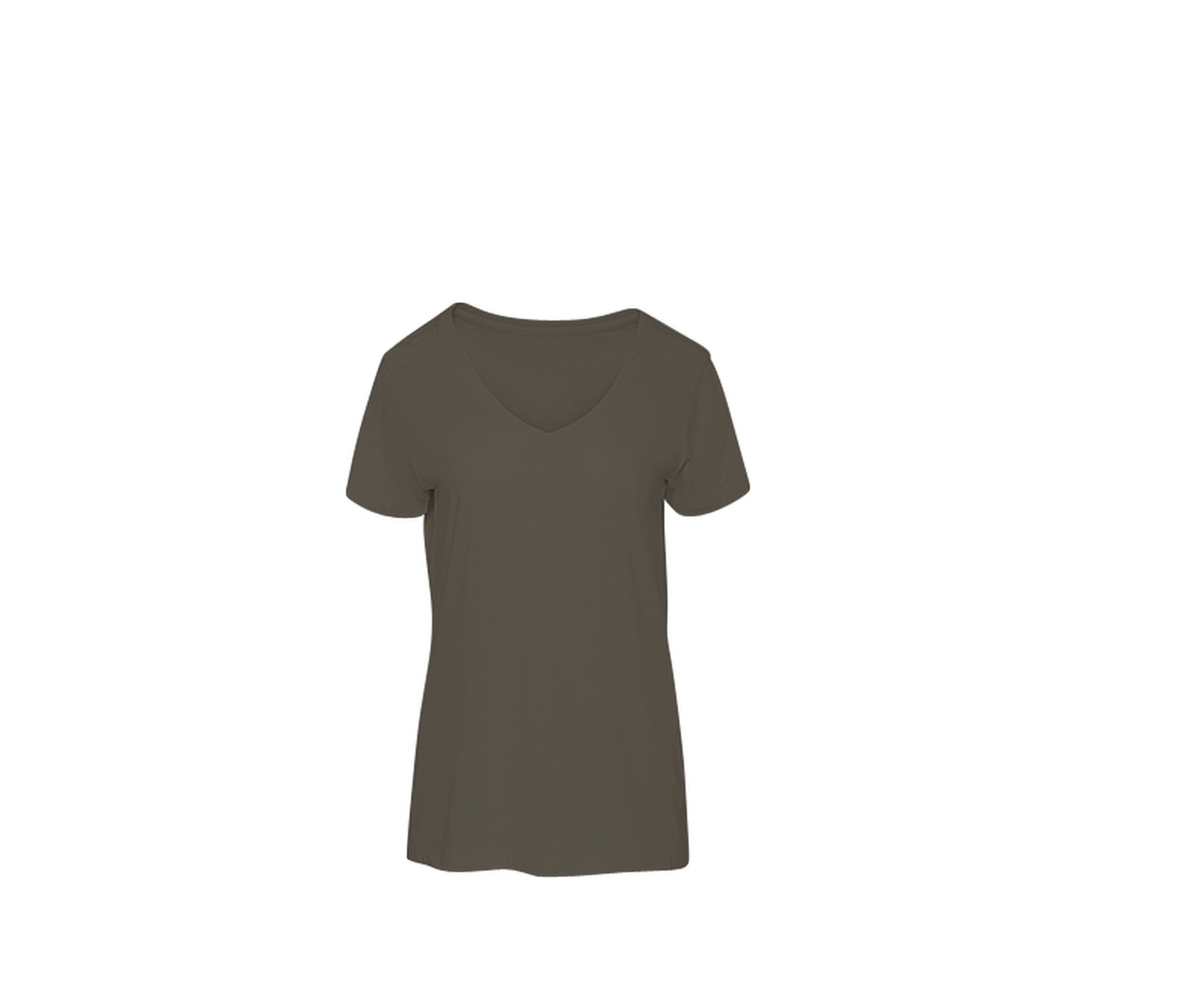 T-Shirt für Damen mit V-Ausschnitt aus Bio-Baumwolle oder Bio in Konversion. Seitennähte. Modischer Schnitt. Glatte Oberfläche für einen klaren und präzisen Druck. Ohne Label.