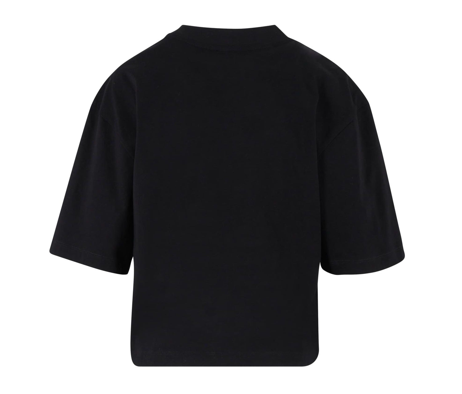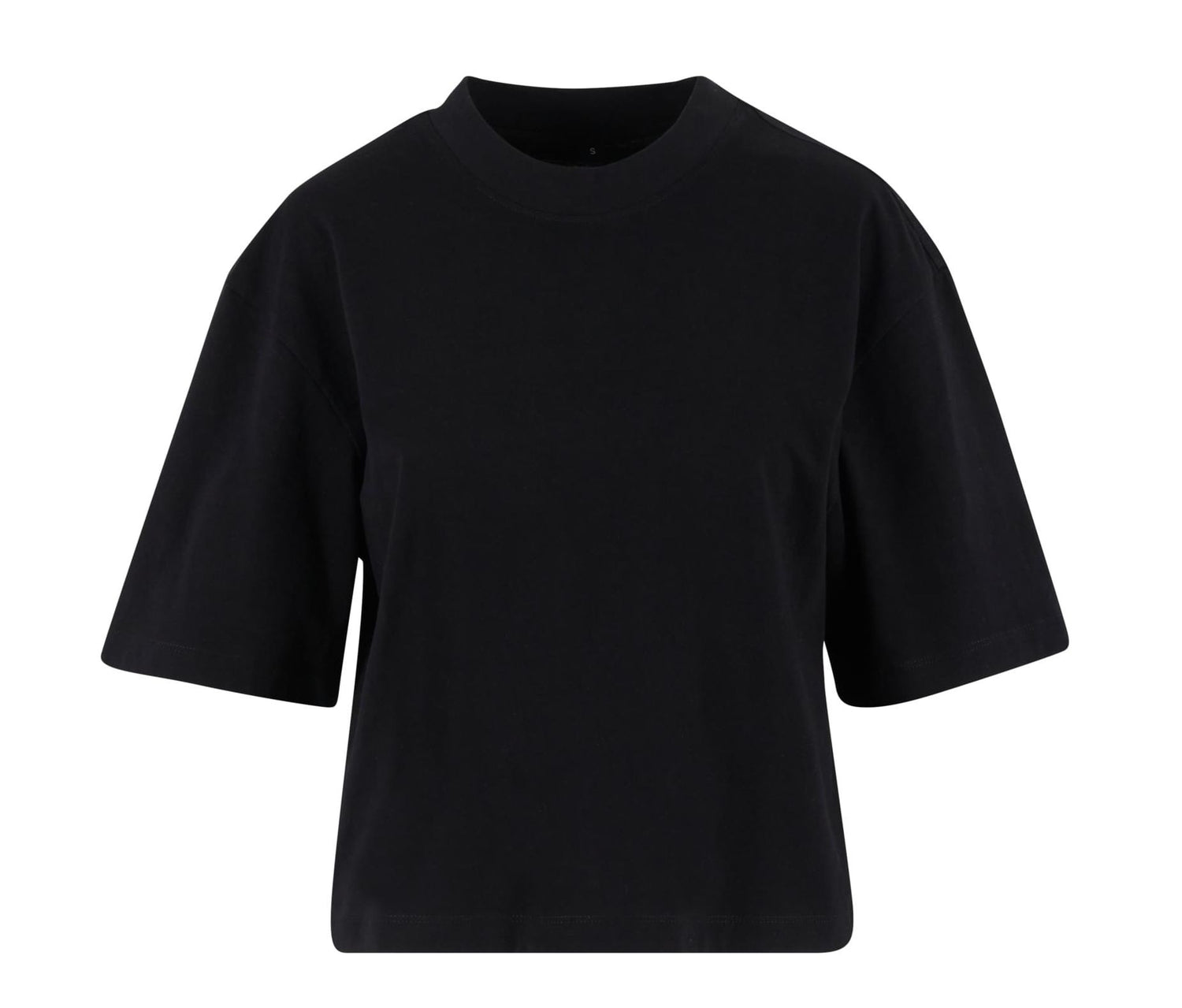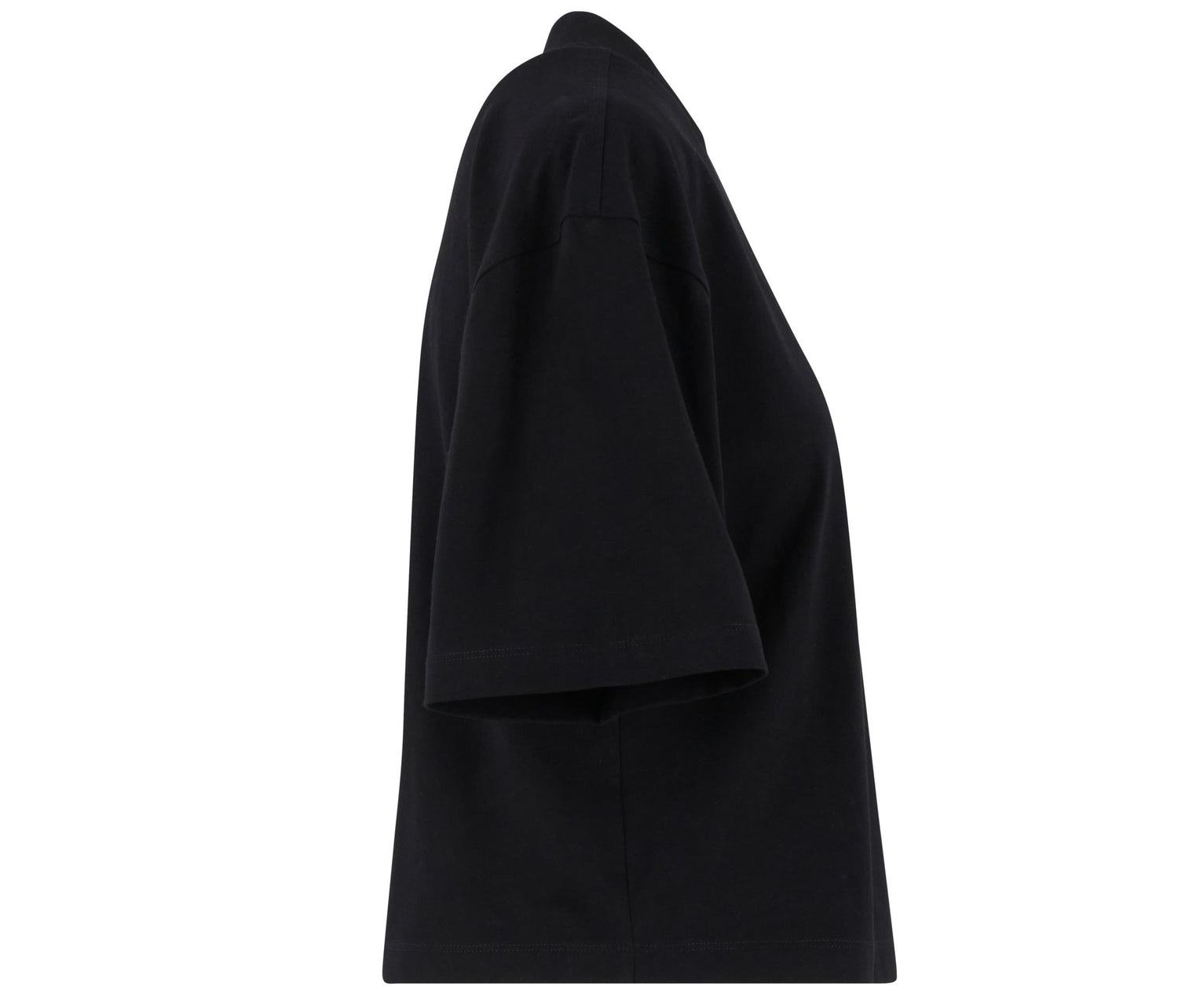 Oversized-Schnitt in gerader H-Form. Extra lange Kurzärmel mit klassischem Armansatz. Breiter Rippbund am Halsausschnitt.