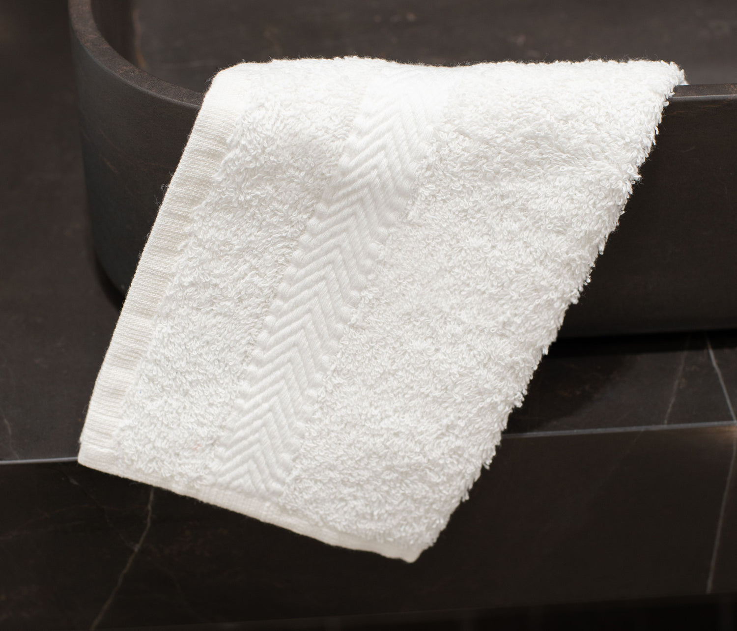 Fischgräten-Bordüre. Schlaufe. Weiches Luxus-Frottee. Sehr saugfähig