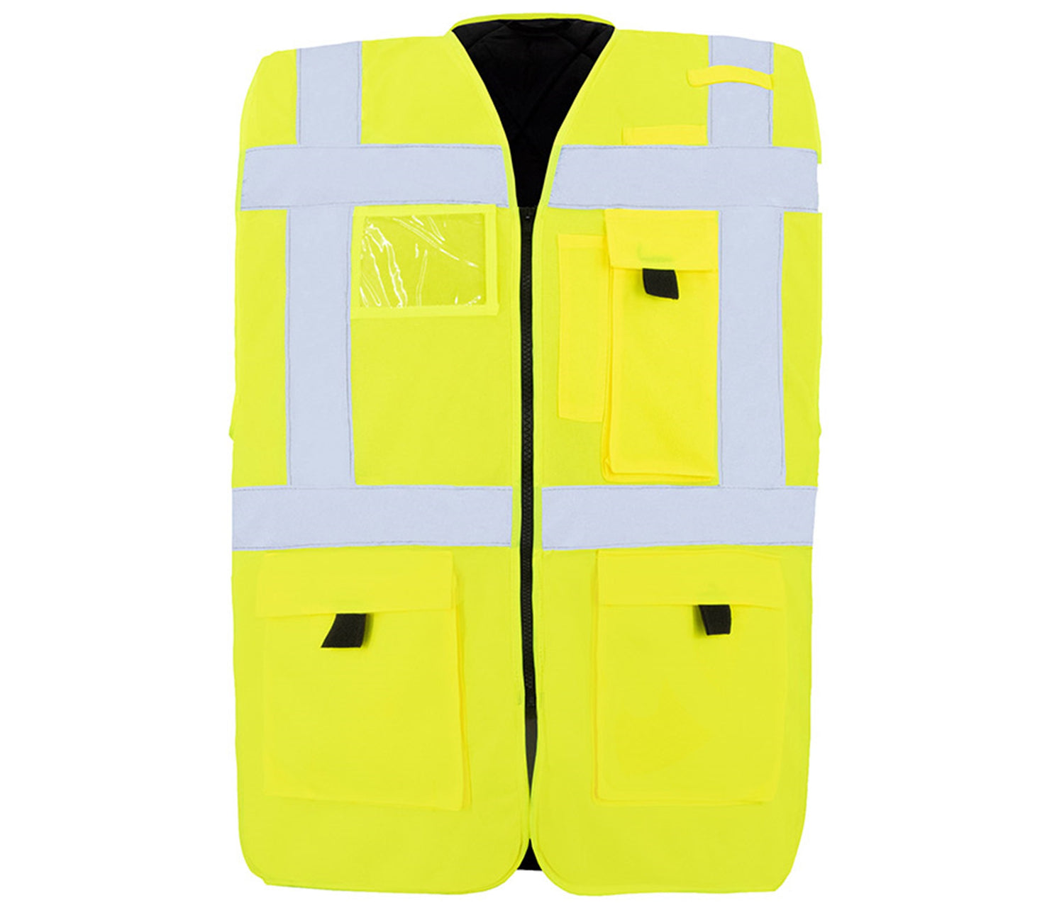 Safety vest with two 5 cm wide reflective stripes around the body and on the shoulders. Certified according to EN ISO 20471.