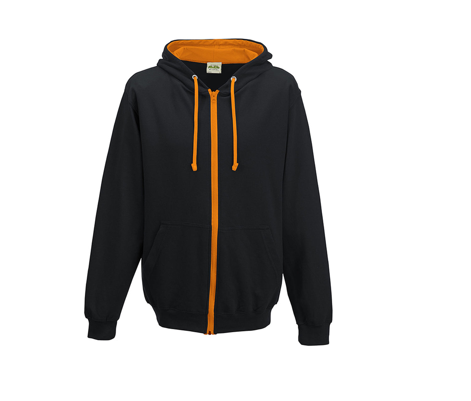 Sweatshirt with lining, contrasting hood, and full-length zip. Contrasting drawstring hood. Front pockets. Brushed interior.