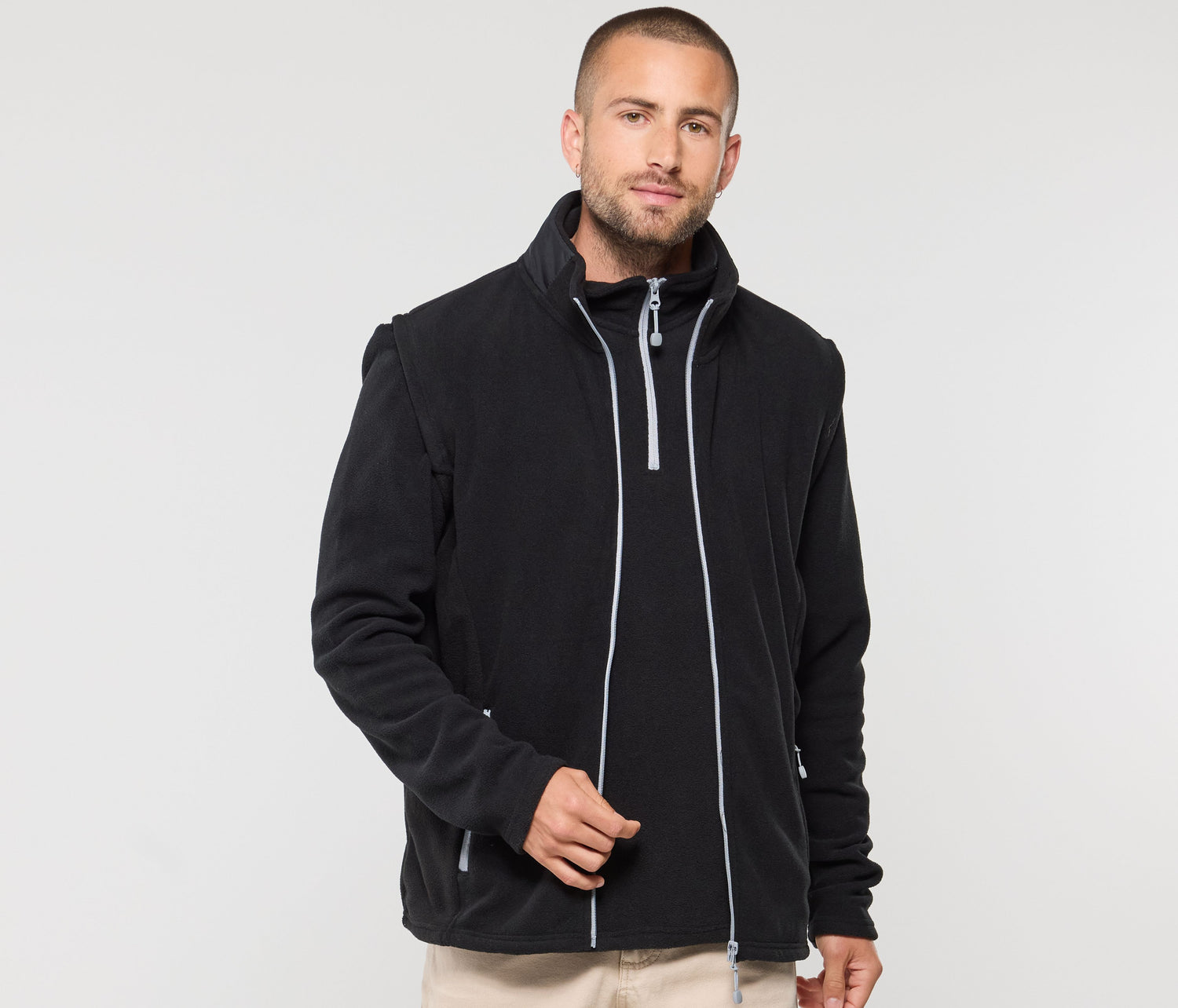 Contrasting zip closure. Herringbone tape at the neck. Zippered pockets with plastic pullers.