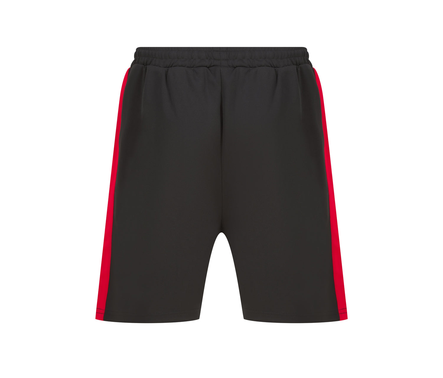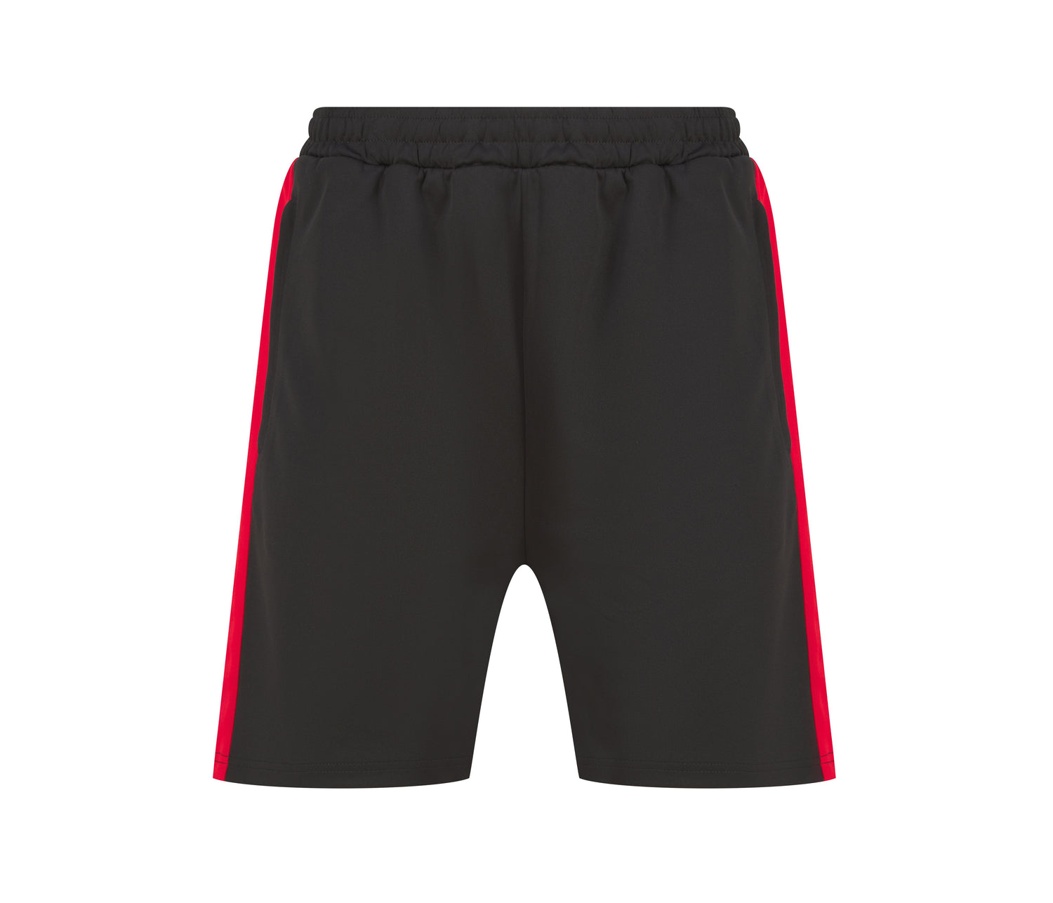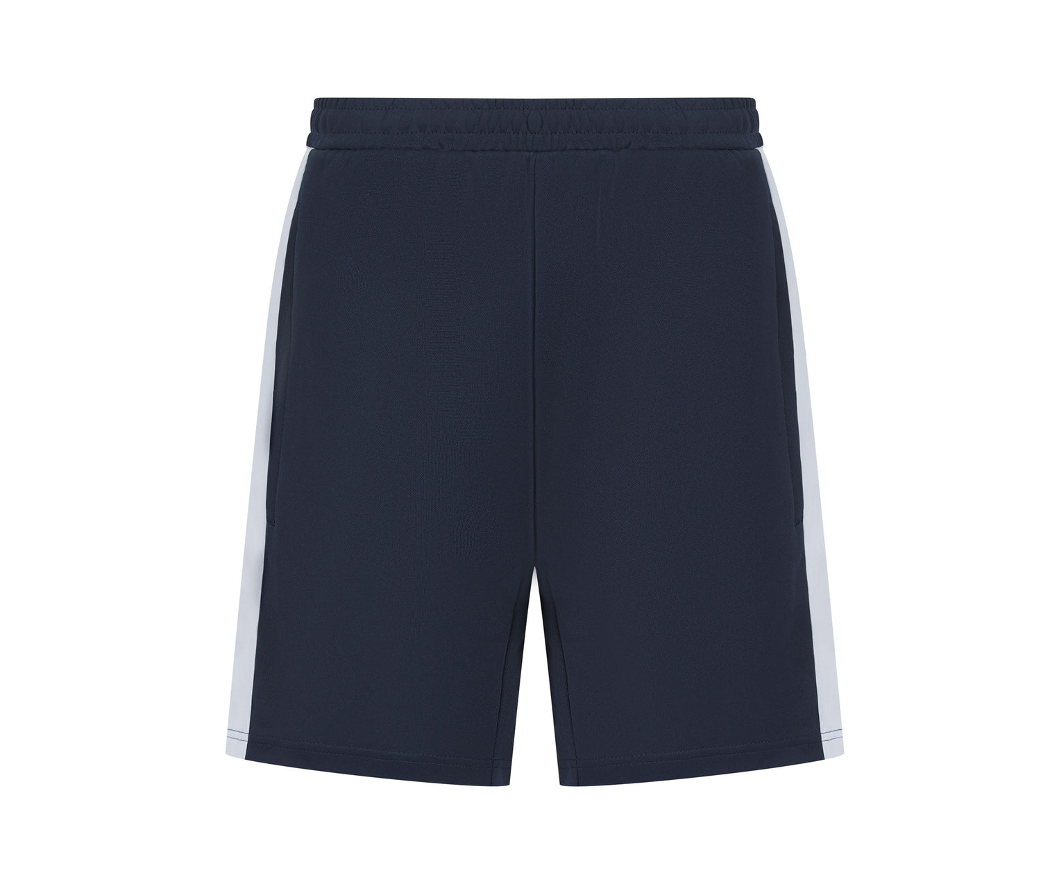 Elastic waistband and internal drawstrings. Contrasting side panels. Zippered pockets at the side seams.