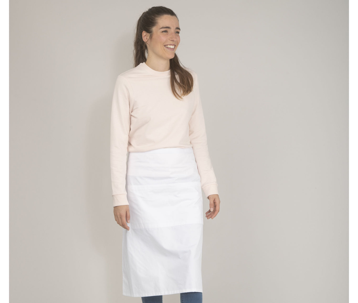 Long bust apron, 3 pockets. Height: 62cm - Width: 90cm. Washable at 60°.