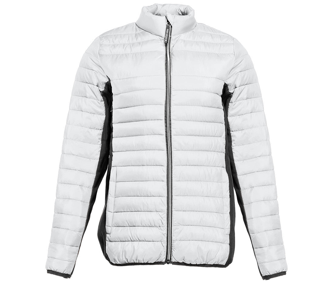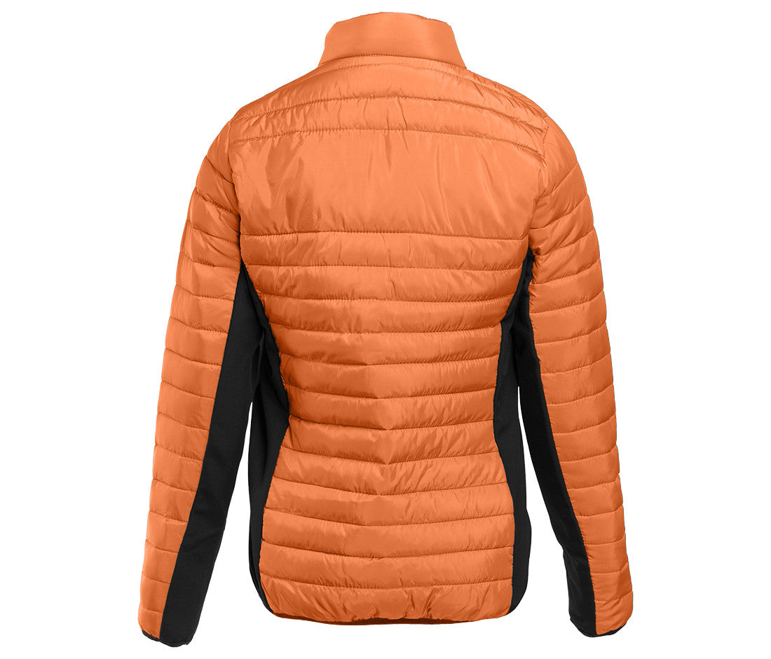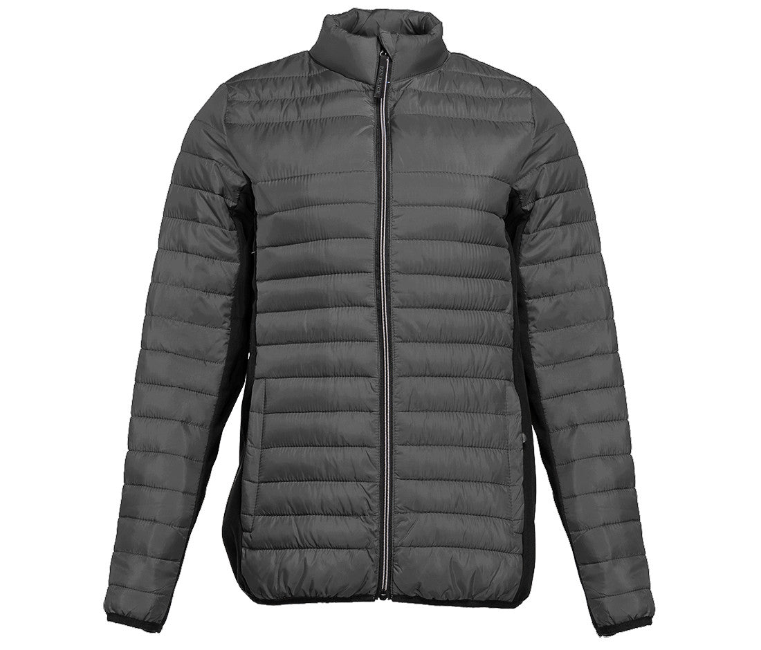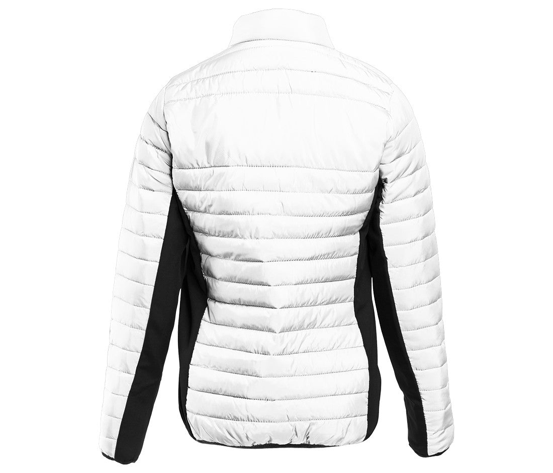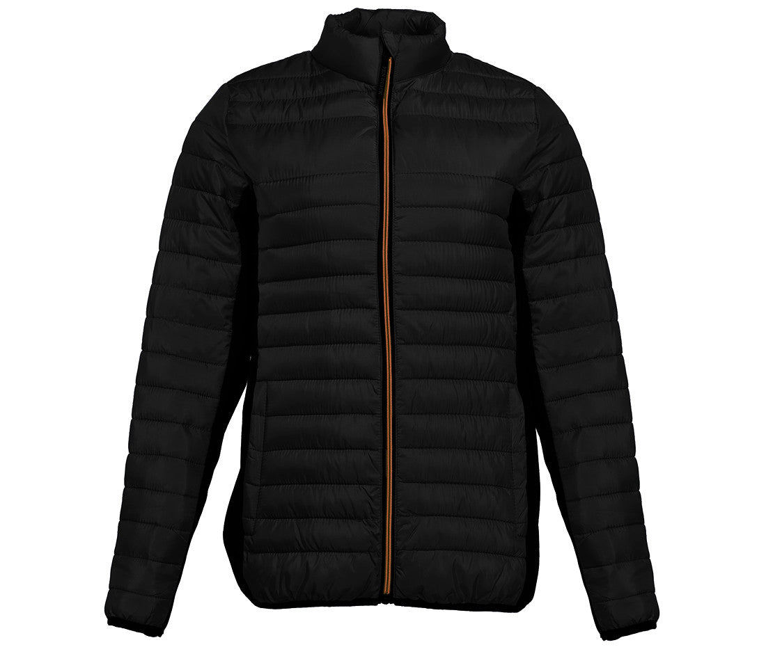 Lightweight, fashionable down jacket made of a two-material construction with a close fit. Two zippered side pockets and two inside pockets. Contrasting zippers.