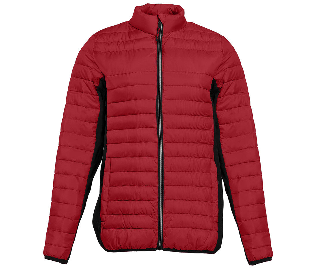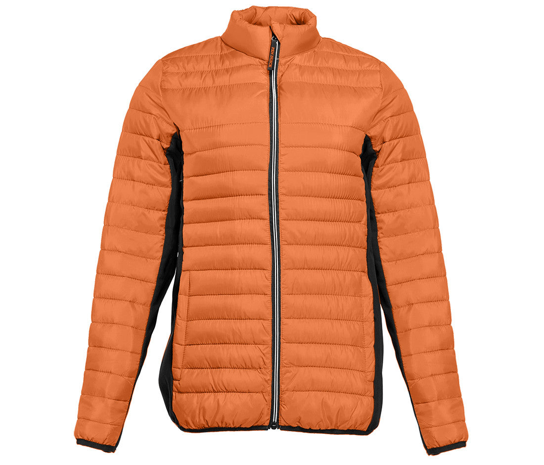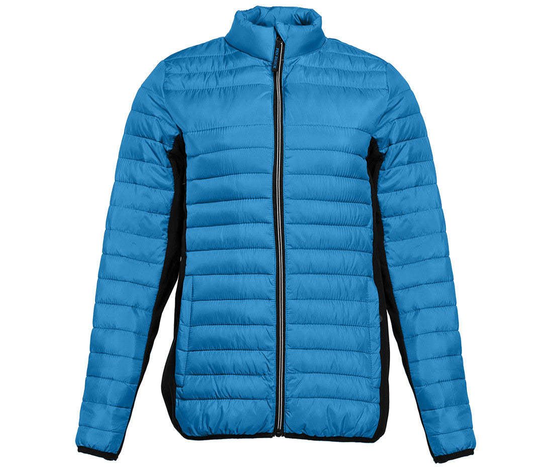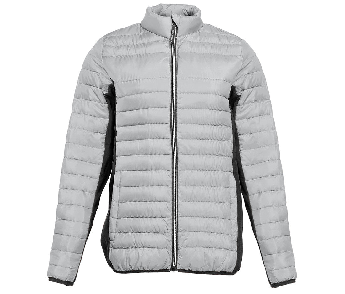 Lightweight, fashionable down jacket made of a two-material construction with a close fit. Two zippered side pockets and two inside pockets. Contrasting zippers.