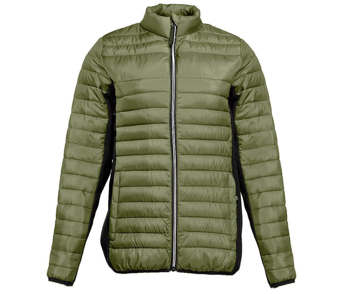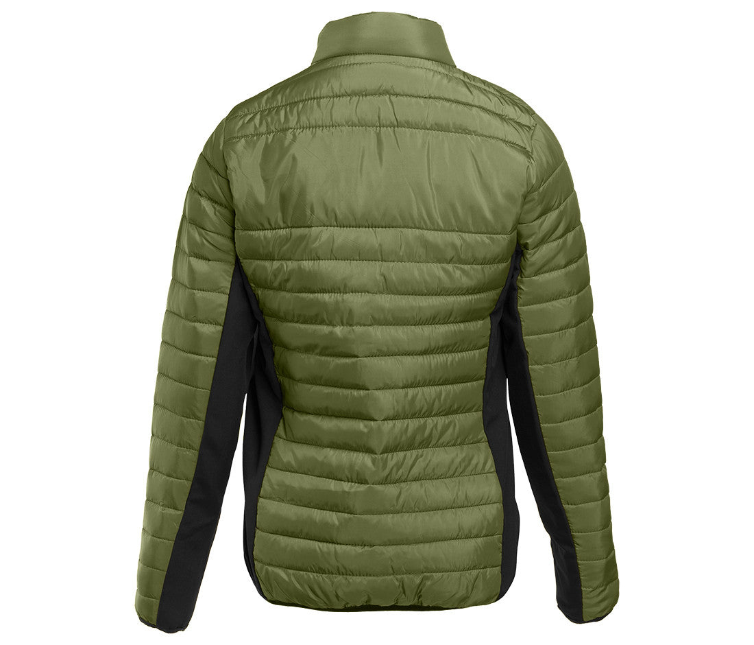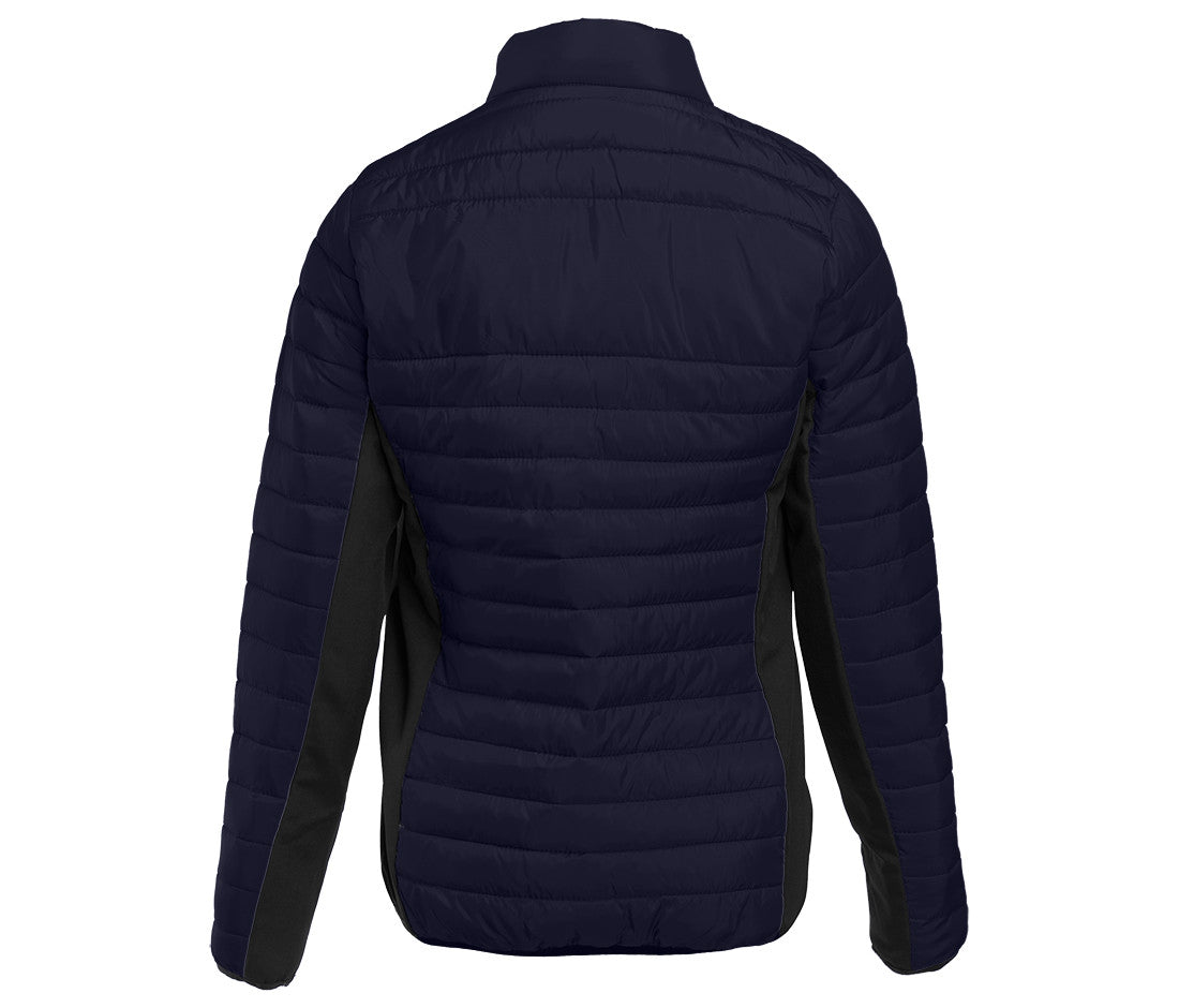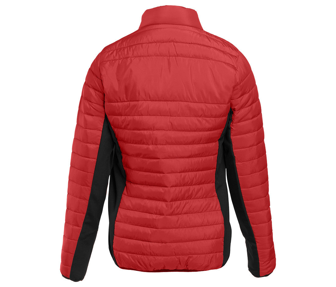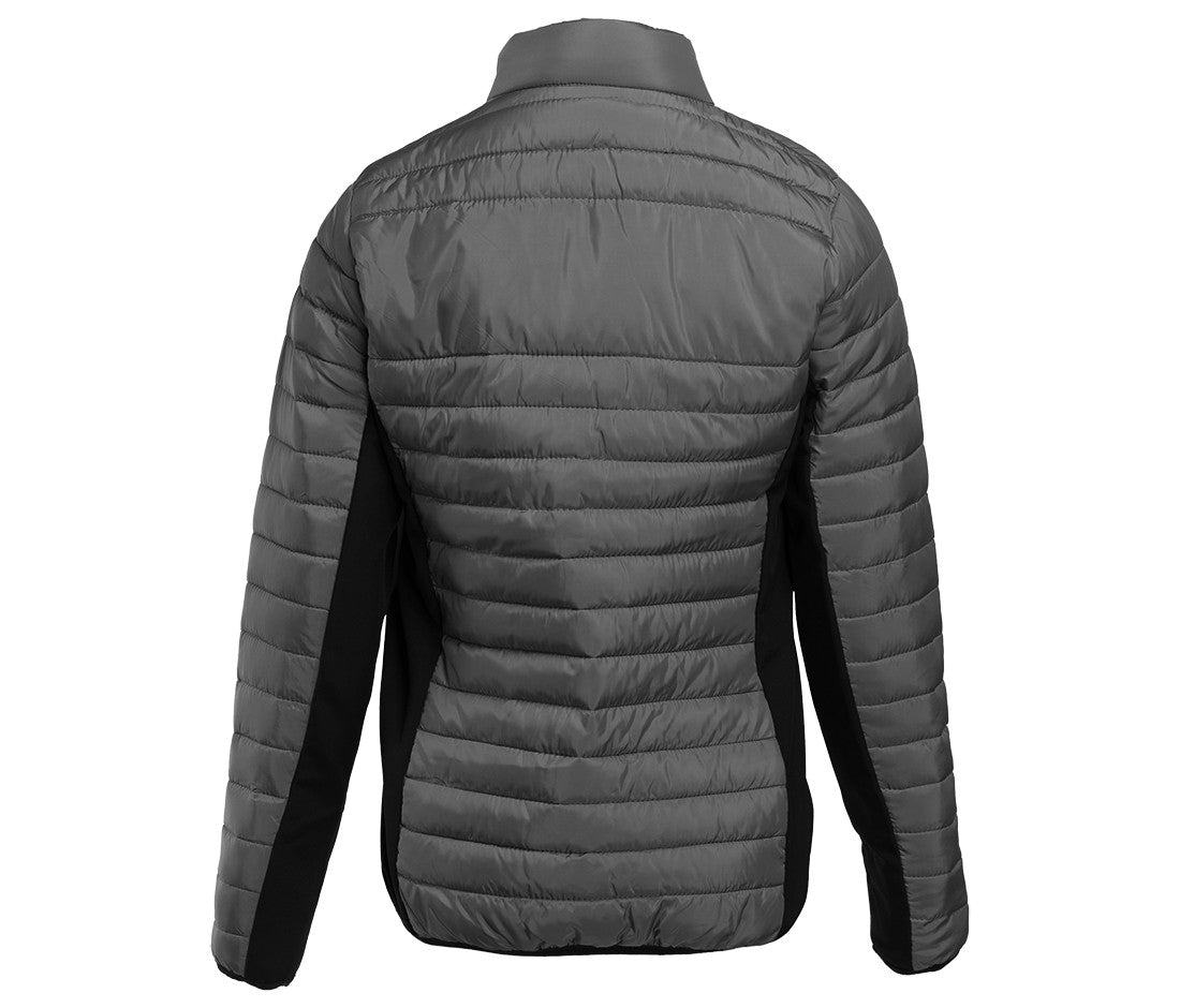 Lightweight, fashionable down jacket made of a two-material construction with a close fit. Two zippered side pockets and two inside pockets. Contrasting zippers.