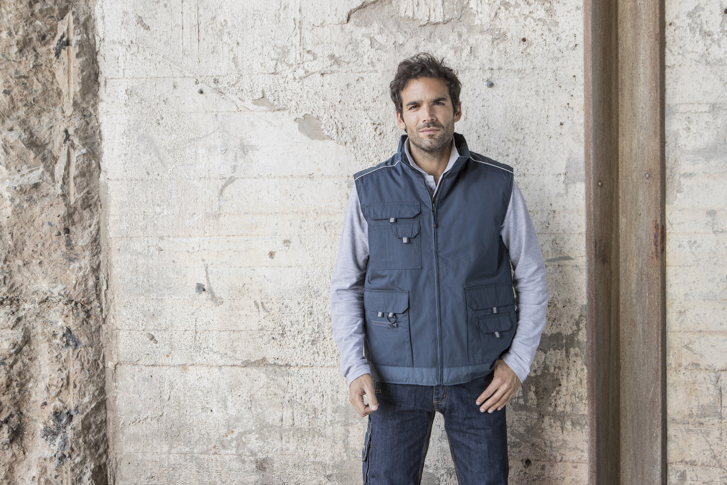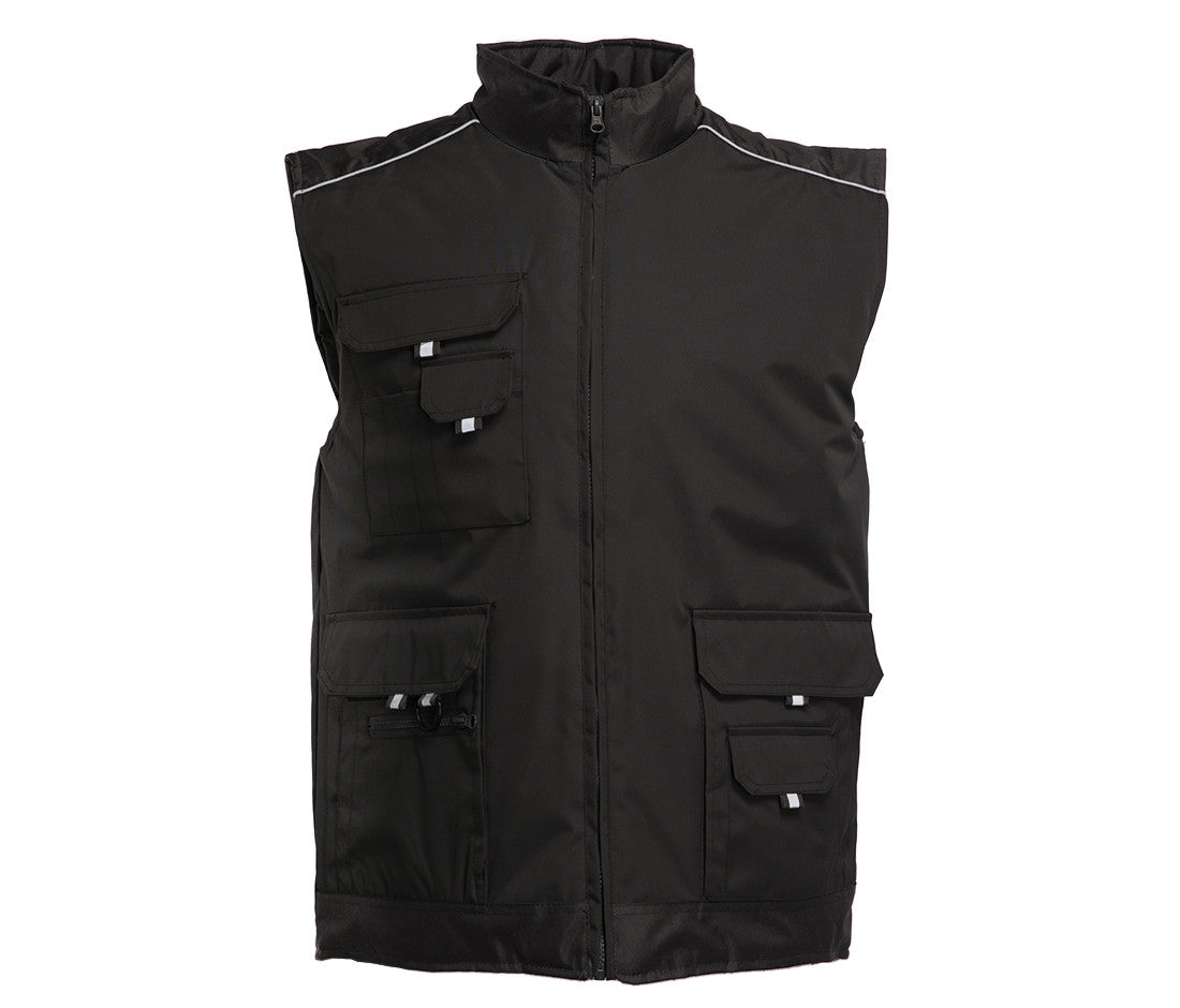 Shoulder, collar, and lower front panels made of 330D Oxford. 11 exterior pockets. Reflective strips on shoulders and pockets.
