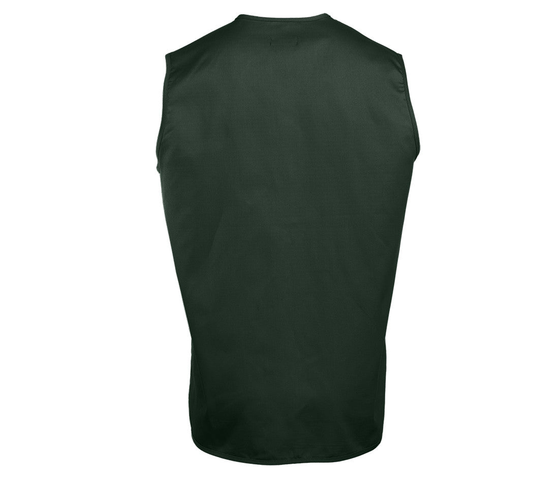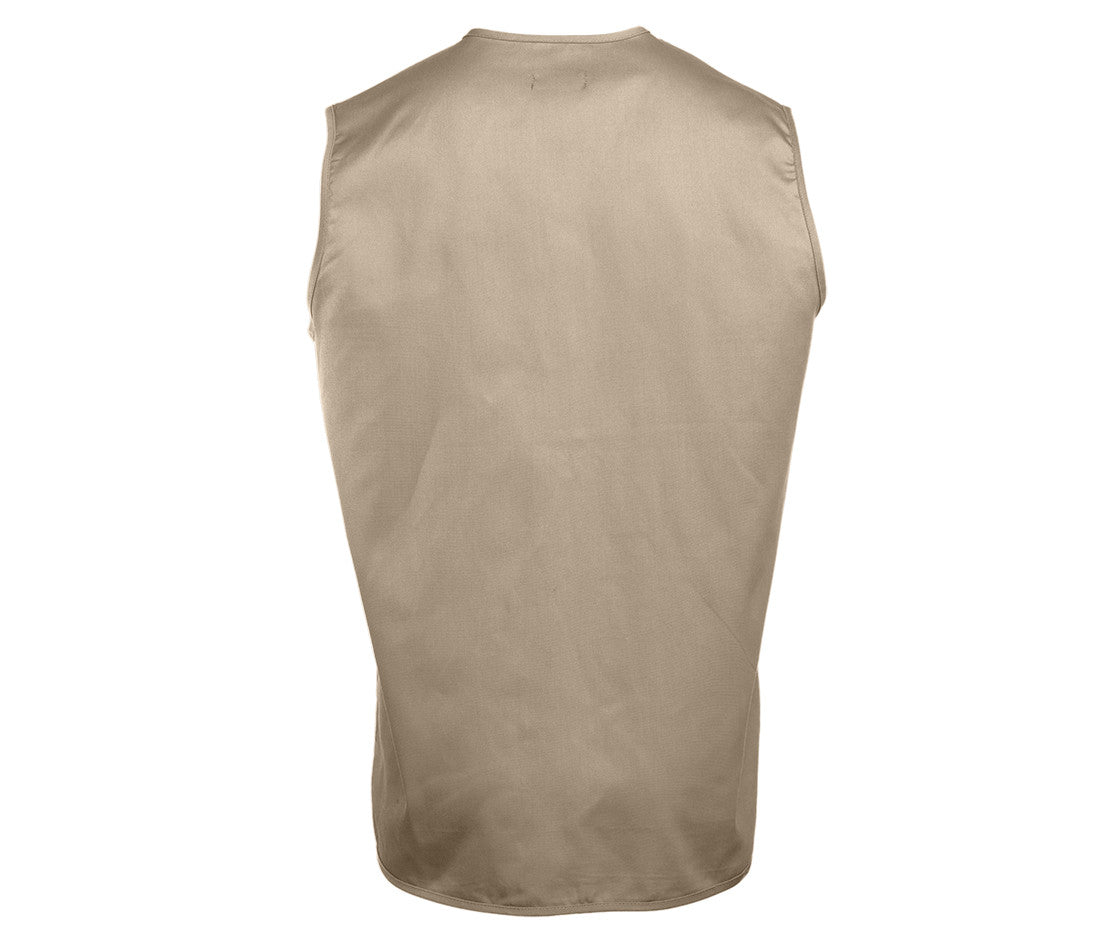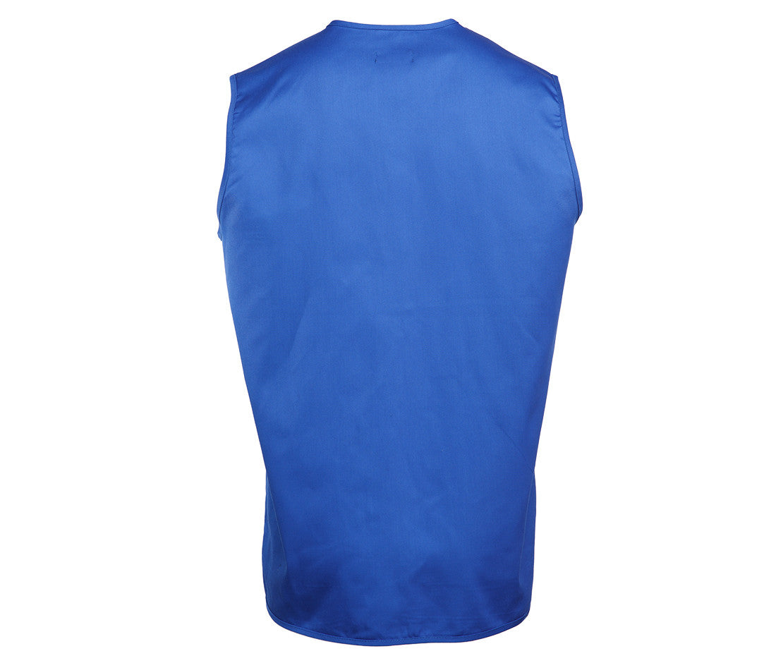 Multi-pocket vest: 6 pockets, including 2 pen pockets, 1 double pocket on the right, and 2 patch pockets with flaps. No heart-shaped pocket for marking.