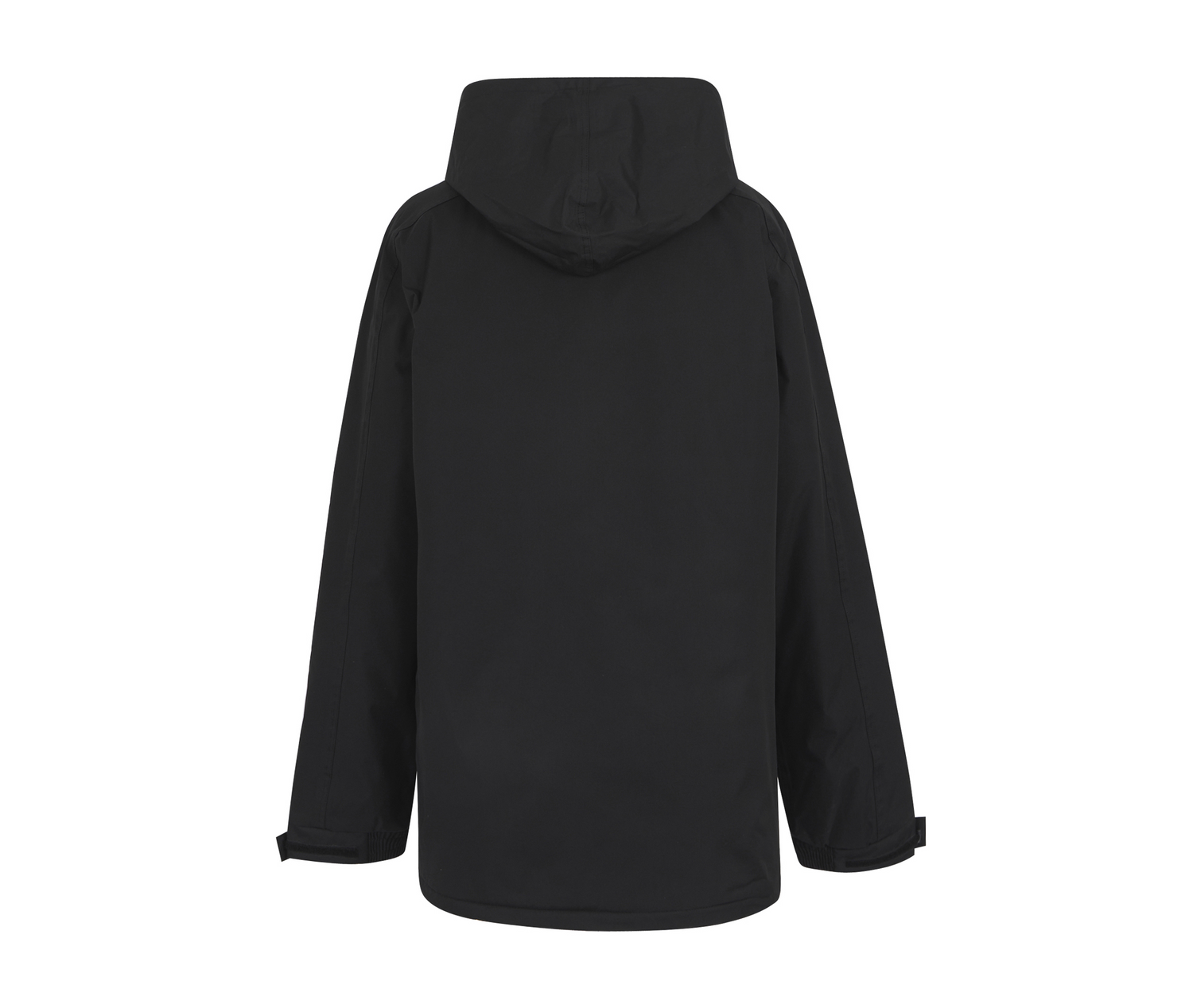 Windproof. Fleece-lined collar. Recycled Thermoguard insulation. Sealed seams. Detachable, adjustable hood under the collar. Partially made from recycled polyester.