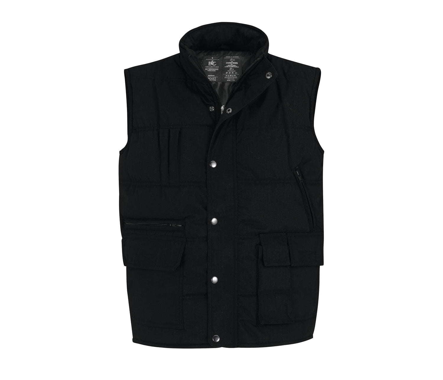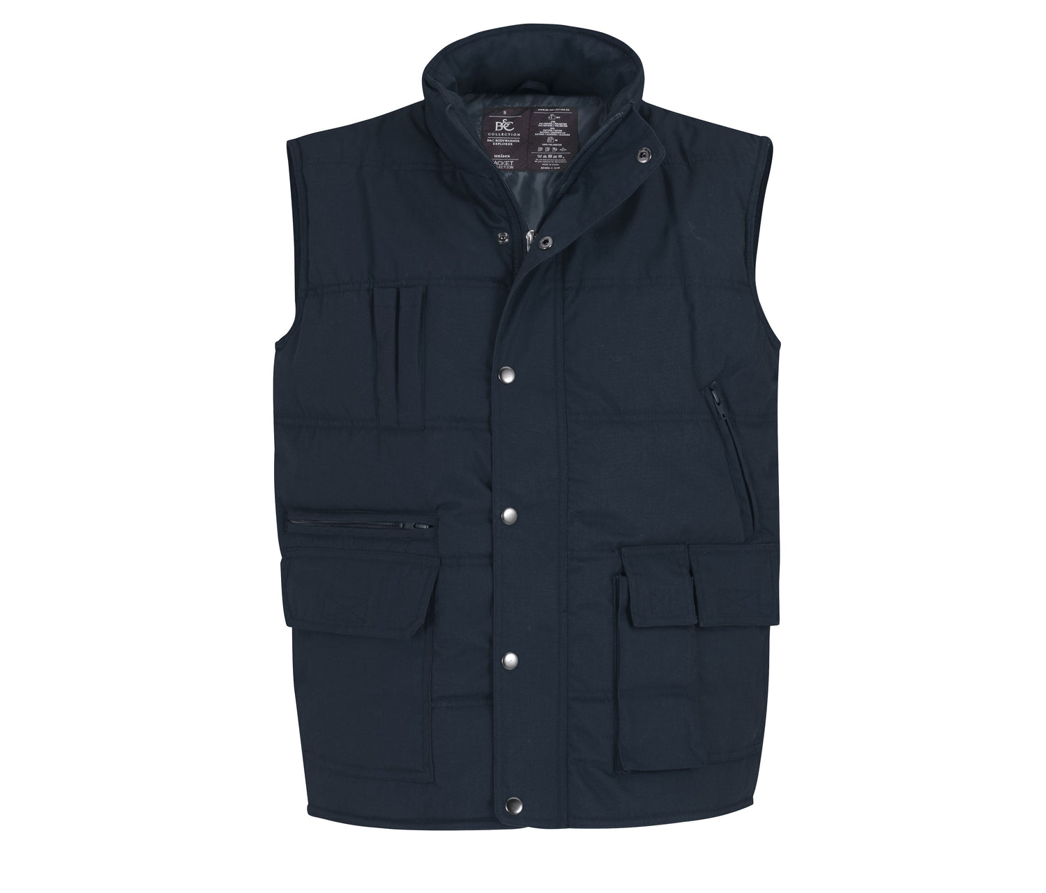 Water-repellent and windproof. Two front pockets with Velcro closures and two with zippers. Tapered and elastic armholes. Extended back.