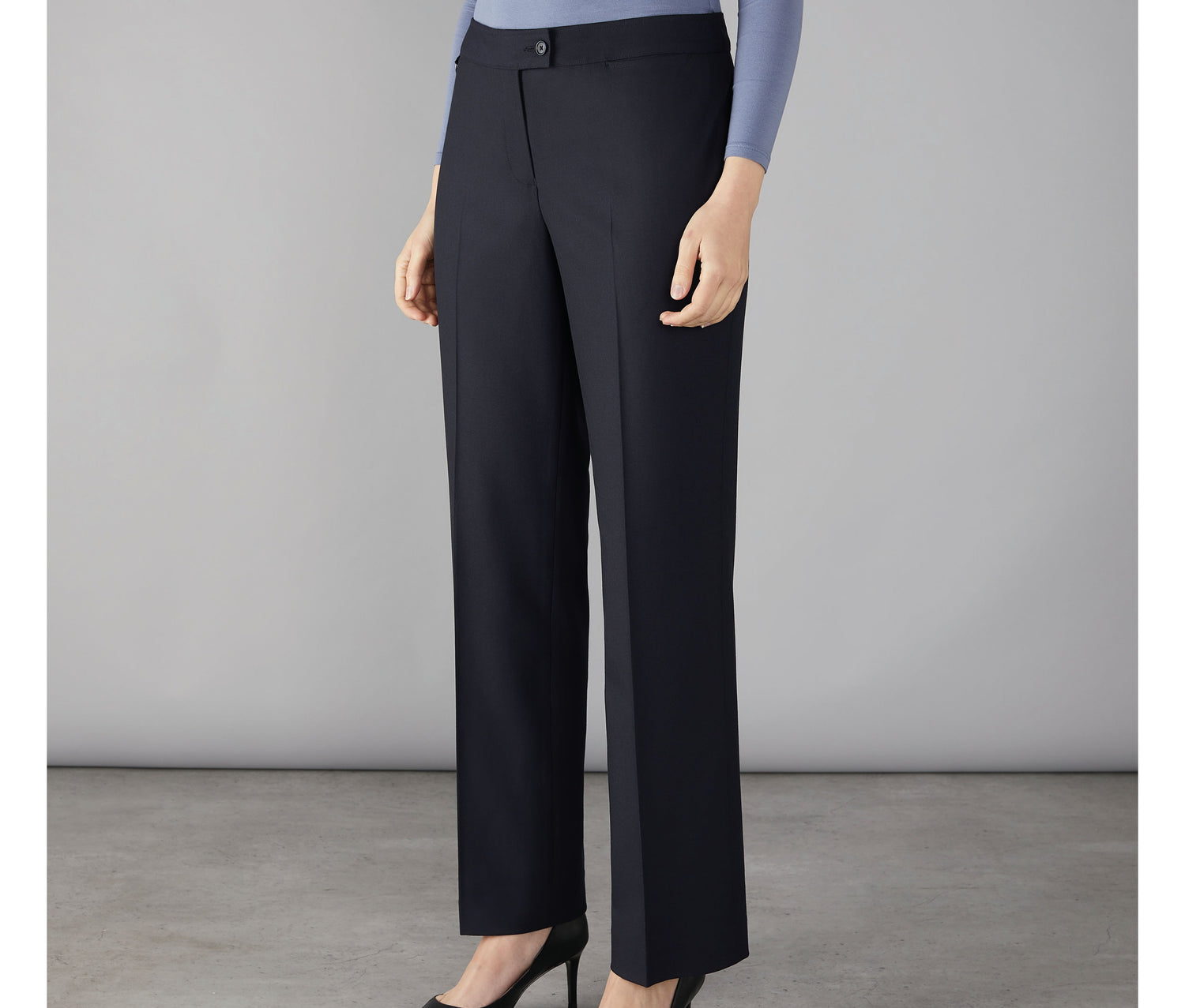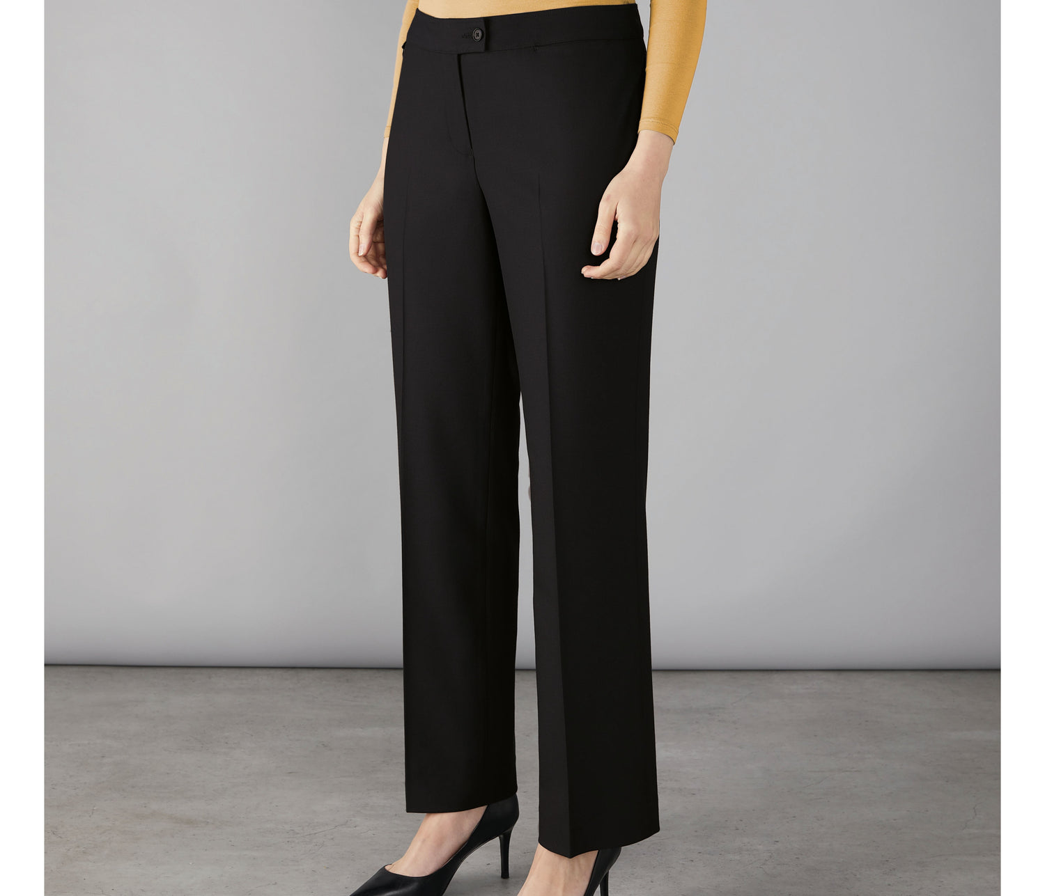 Women's trousers with pressed pleats. Zipper fly with button. Two lengths for certain sizes: U: 94 cm and R: Regular: 79 cm.