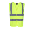 Two vertical and two horizontal reflective stripes (stitched). Adjustable waistband with Velcro®. Complies with EN ISO 20471:2013 +A1:2016 Class 2 certification (orange also complies with RIS-3279/TOM).