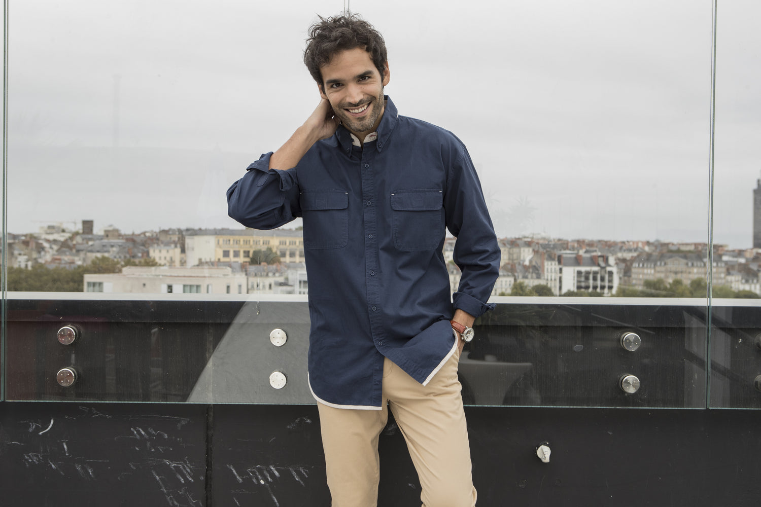 Shirt with two flap chest pockets. Contrasting collar lining. Contrasting piping at the bottom.