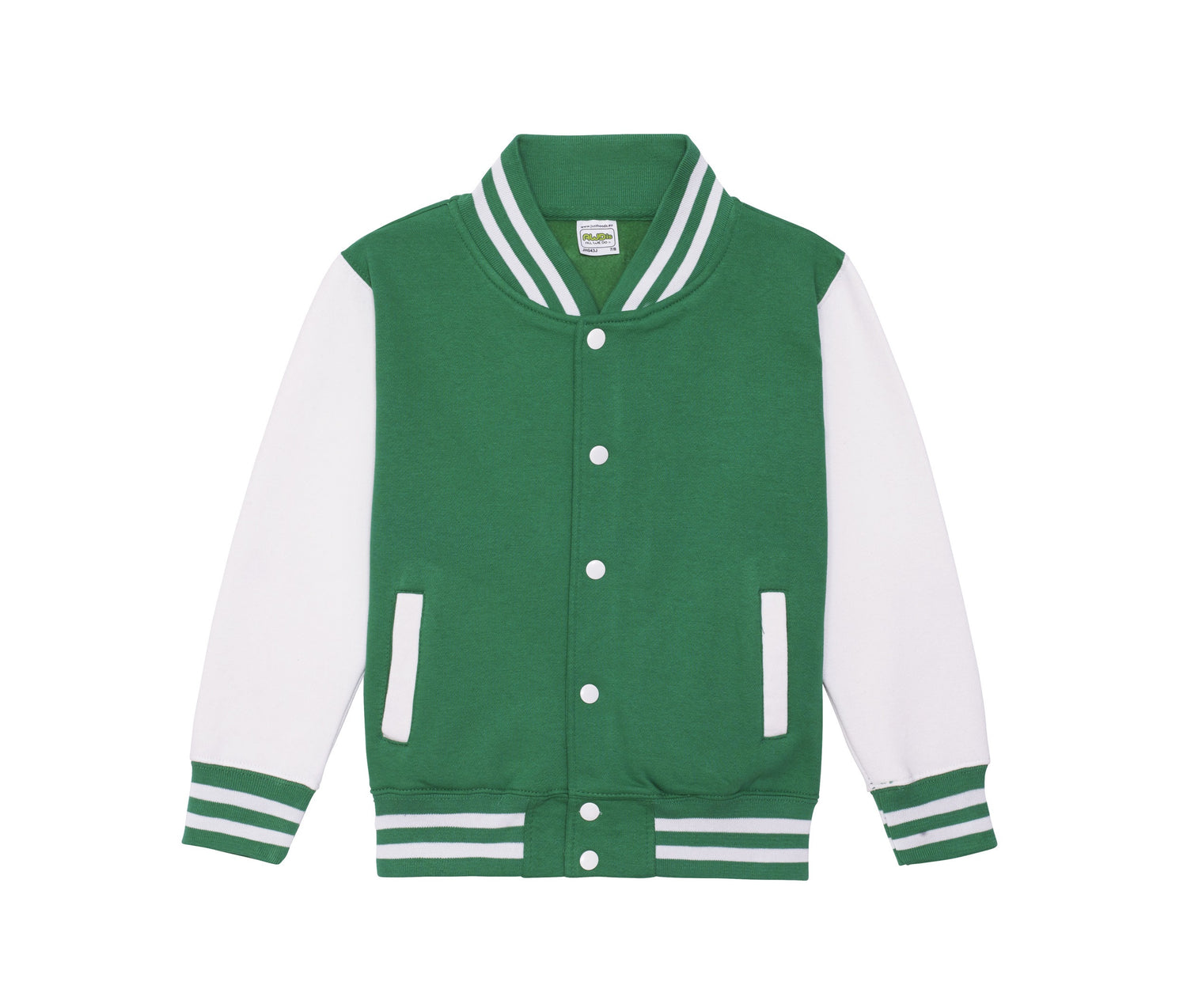 JUST HOODS KIDS VARSITY JACKET - 3/4 - XS / JET BLACK/WHITE is backordered and will ship as soon as it is back in stock.