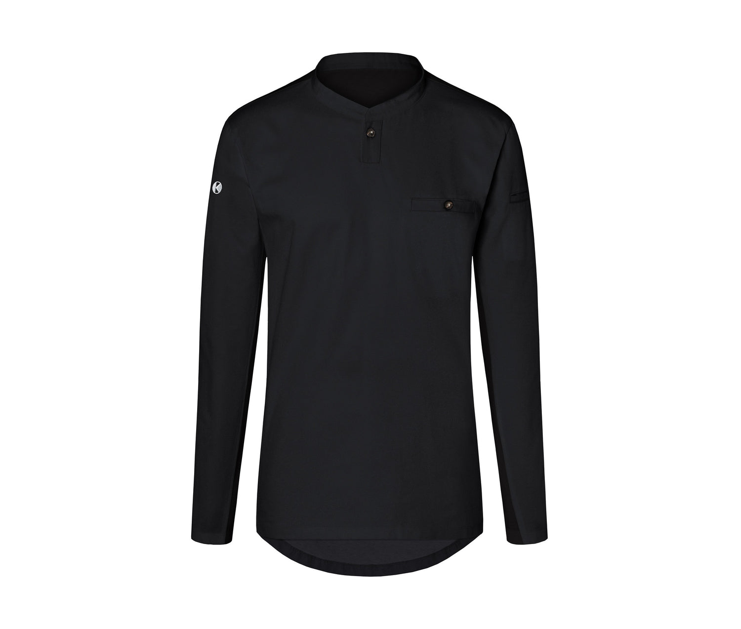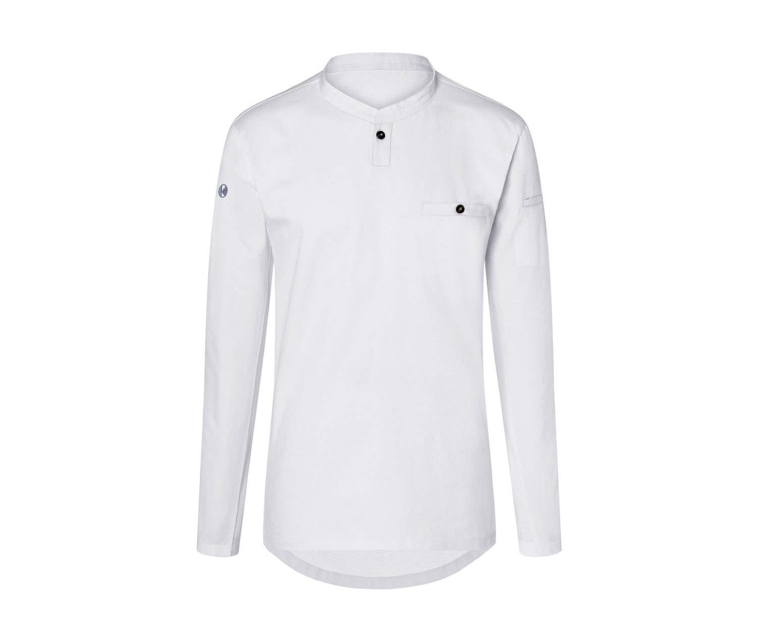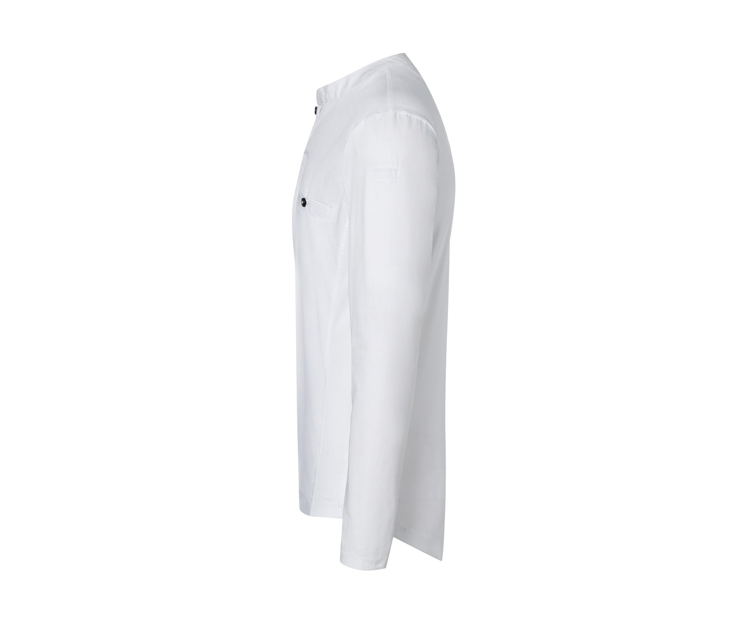 Breathable. Suitable for the following areas: kitchen, service, cleaning, nursing, wellness... Officer's collar with buttonhole. Piped pocket on the chest and left sleeve.