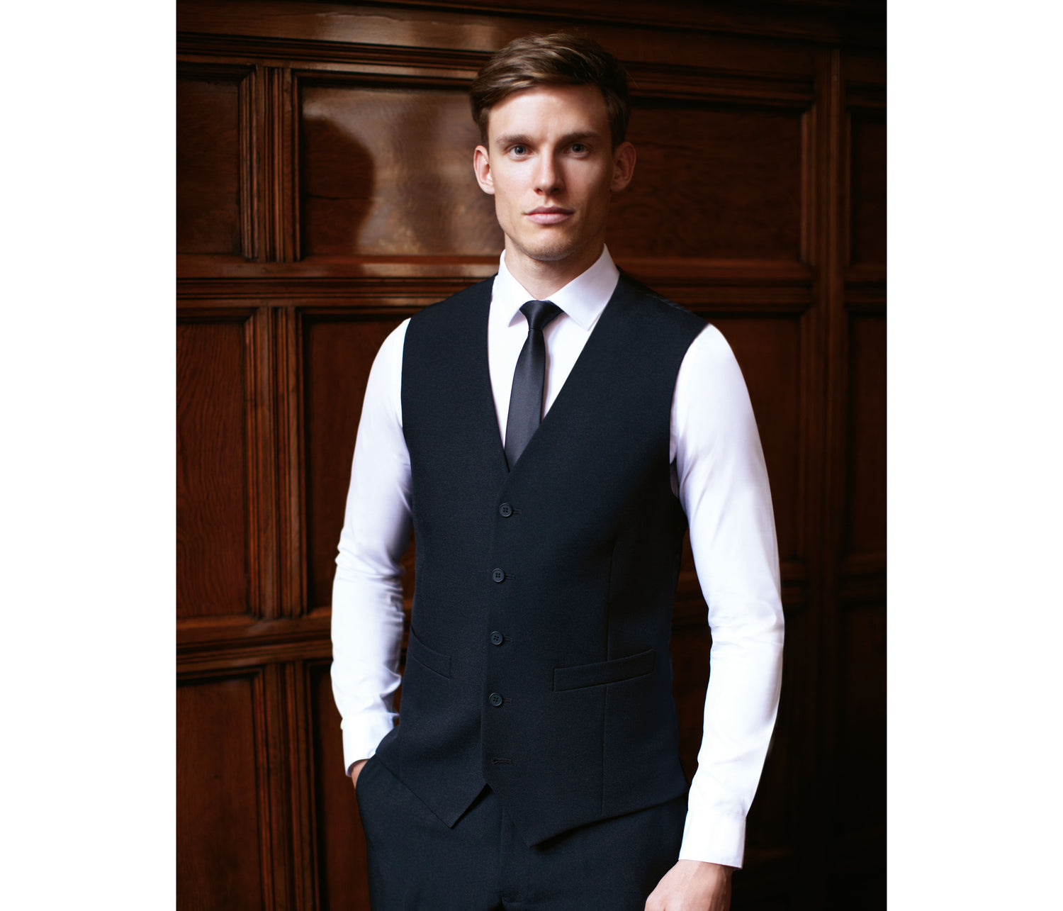 Waistcoat with adjustable back. Lined back. With 5 buttons.