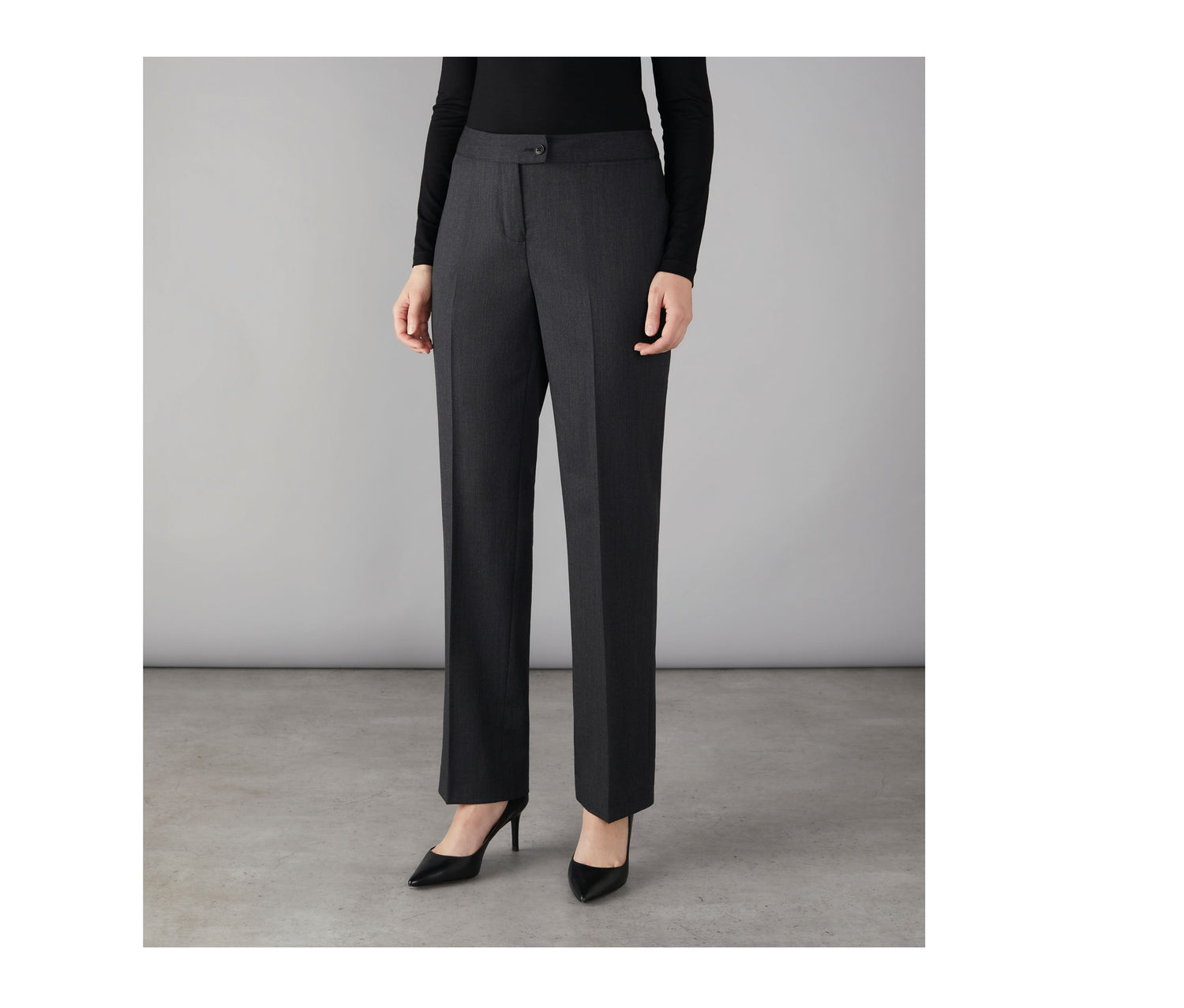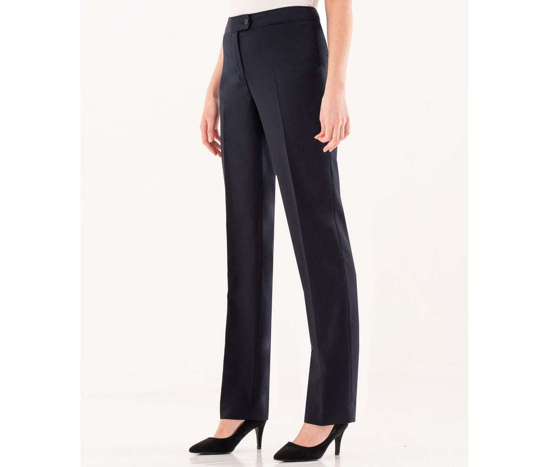 Women's trousers with pressed pleats. Zipper fly with button. Length: 79 cm.