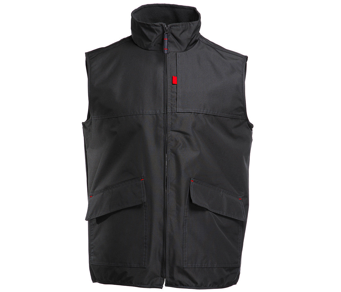 Body warmer, windproof, waterproof, and durable. Three pockets with Velcro closure. Fleece lining.