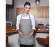 Short bib apron (75x60 cm) with ties made of the same material. The collar is easily adjustable with a buckle (up to 70 cm). It has a patch pocket with two compartments (40x20 cm).
