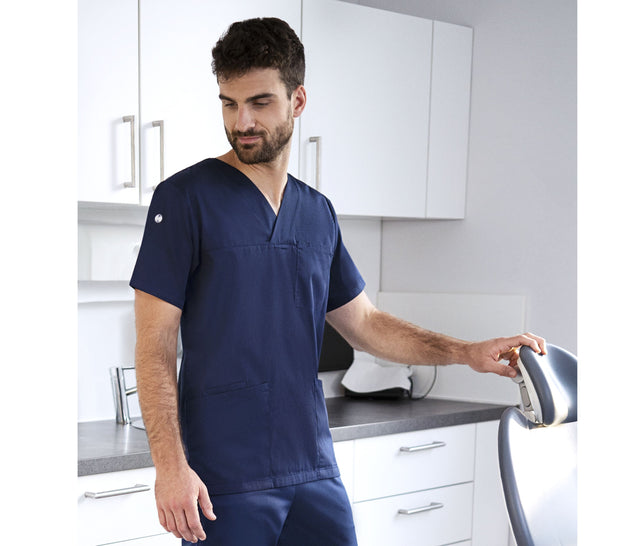 V-neck collar. Particularly suitable for health and beauty. Straight fit.
