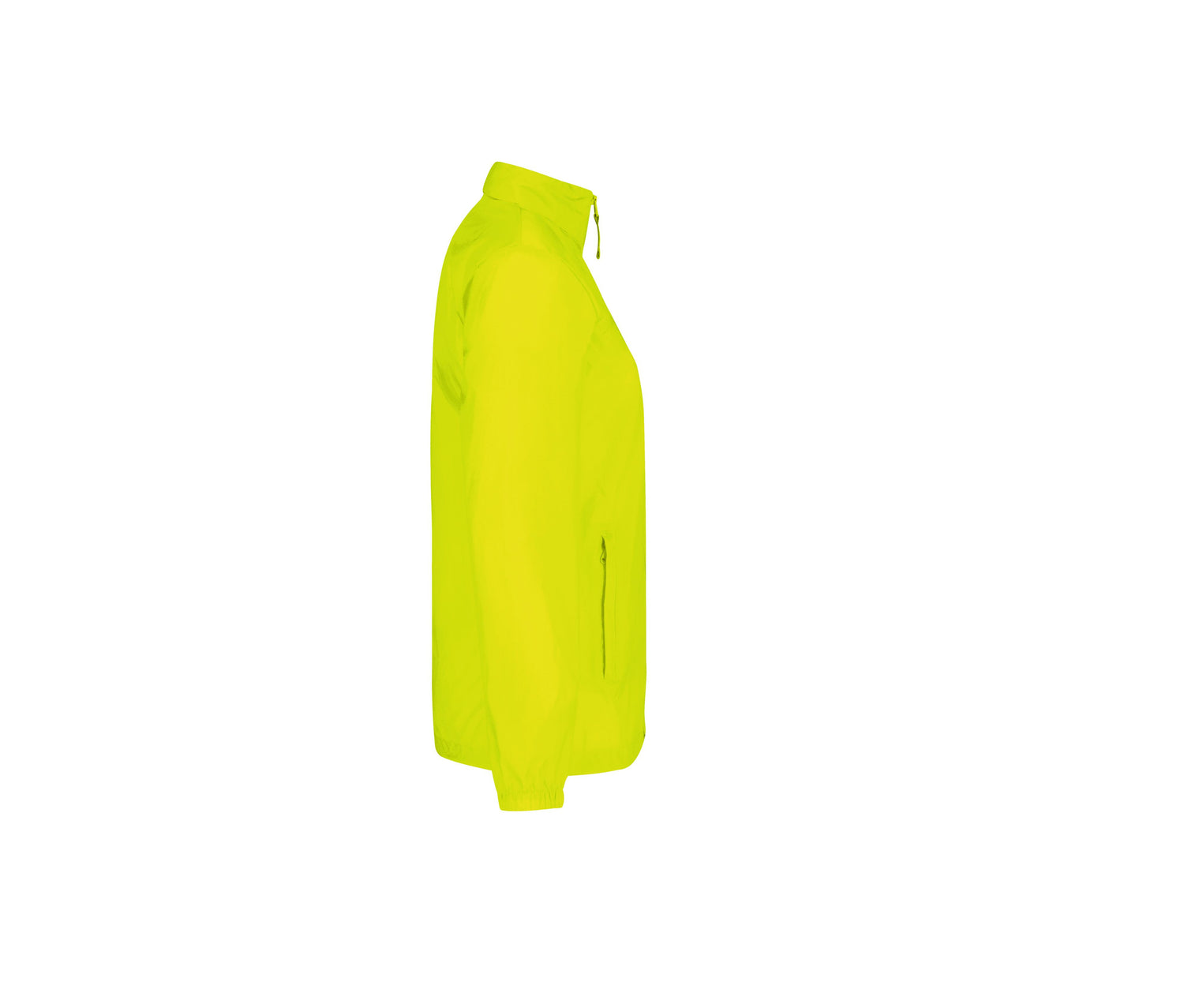 Waterproof and windproof. Full-length zipper with a contrasting-color puller. The foldable jacket, based on the K-way® system, is integrated into the right pocket and features a double-slider zipper. A feminine fit.