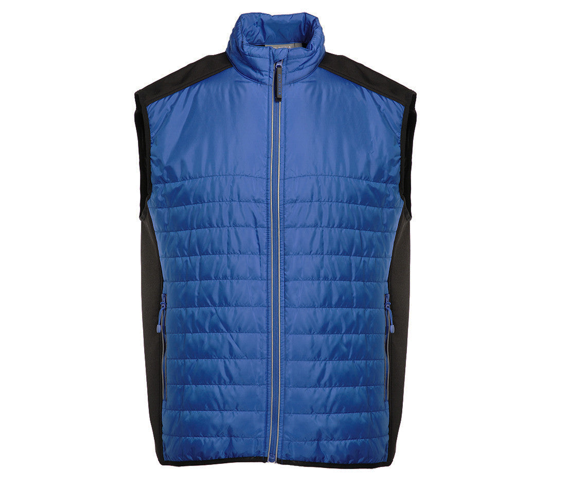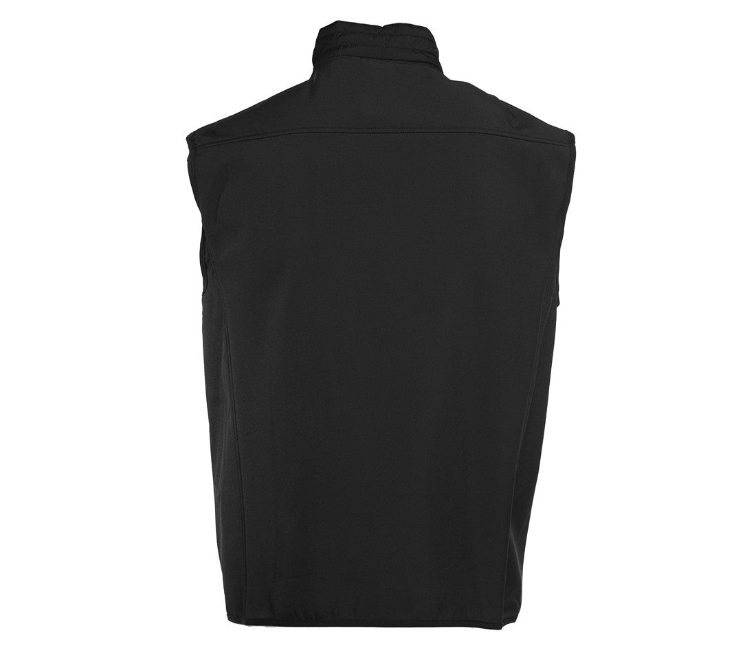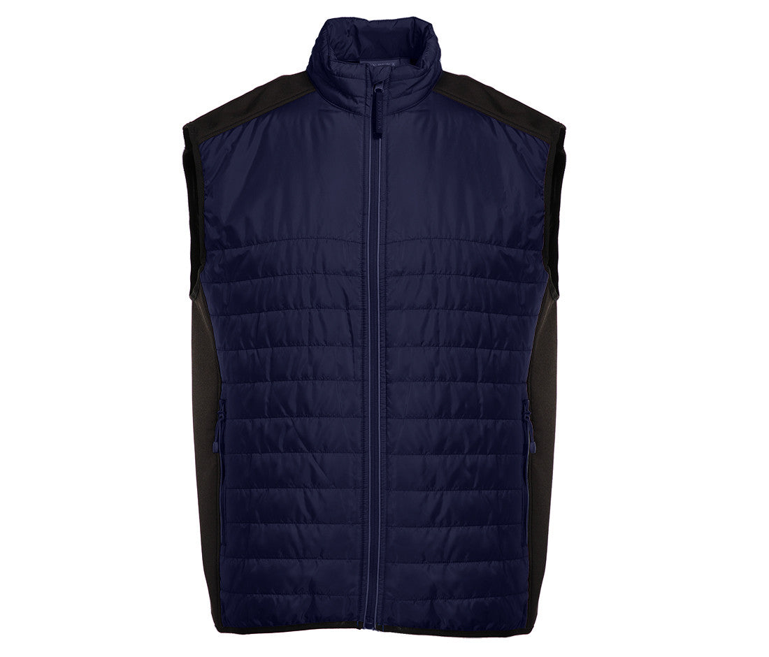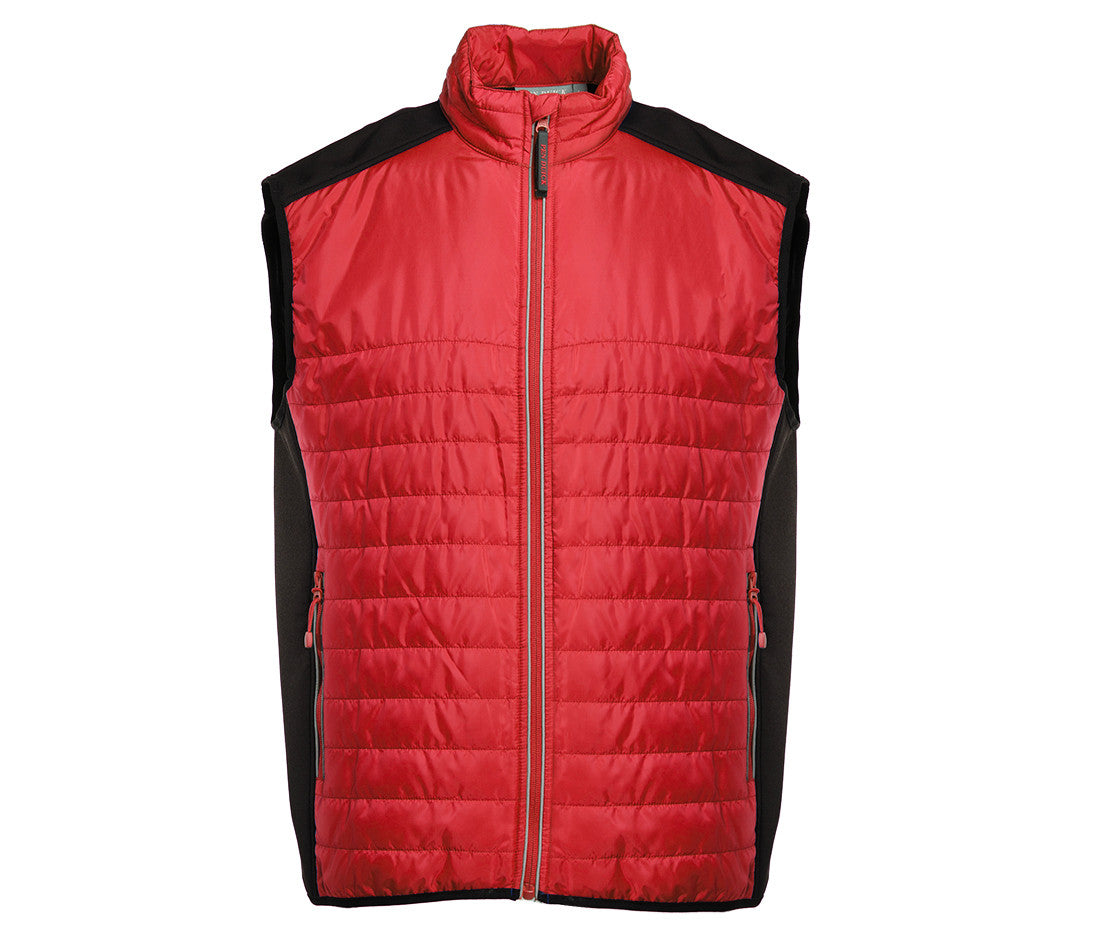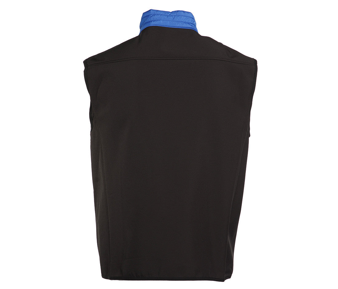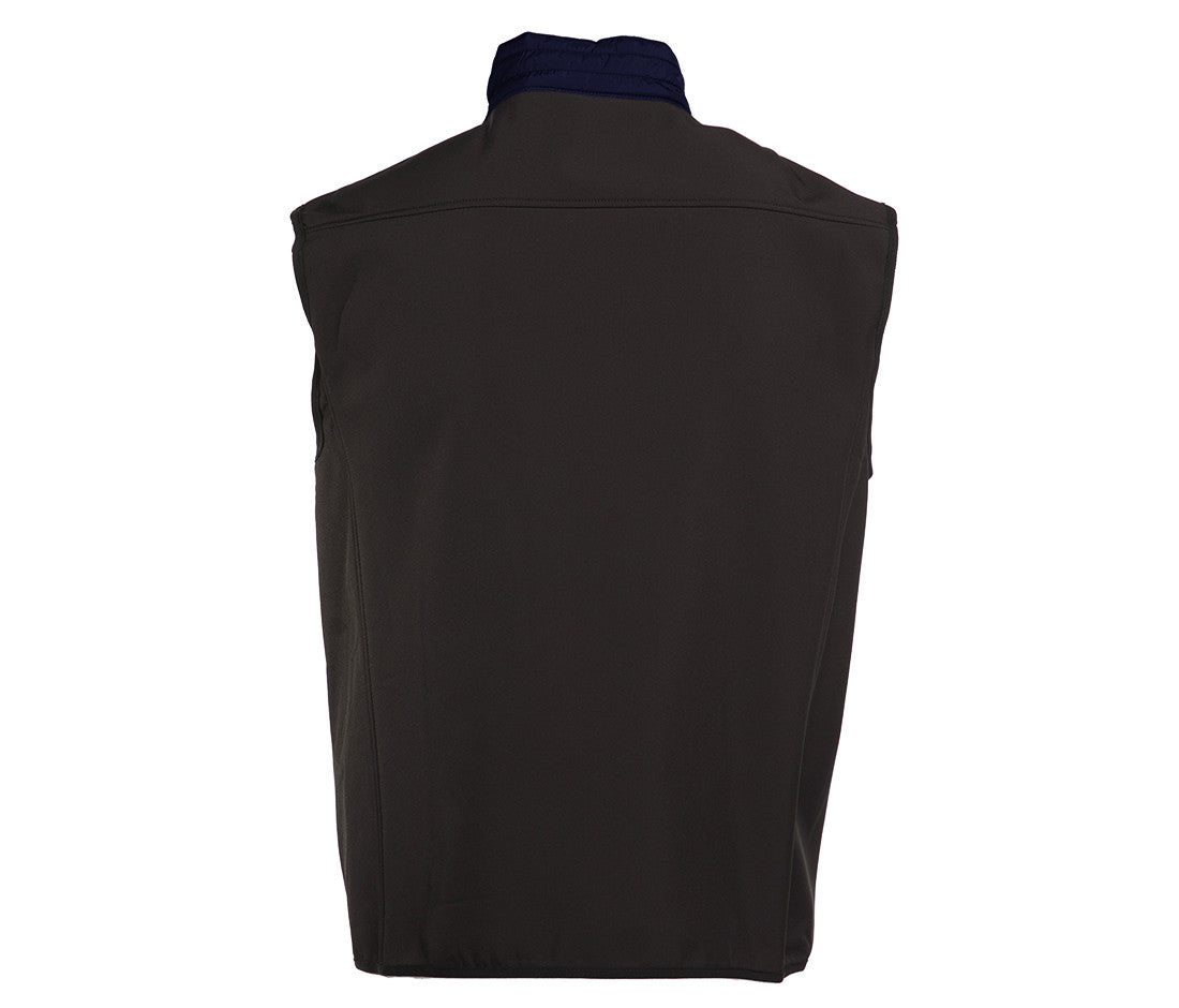 Body warmer made of a dual-material, water-repellent and windproof fabric. Two side pockets. Reflective hems on the zippers.