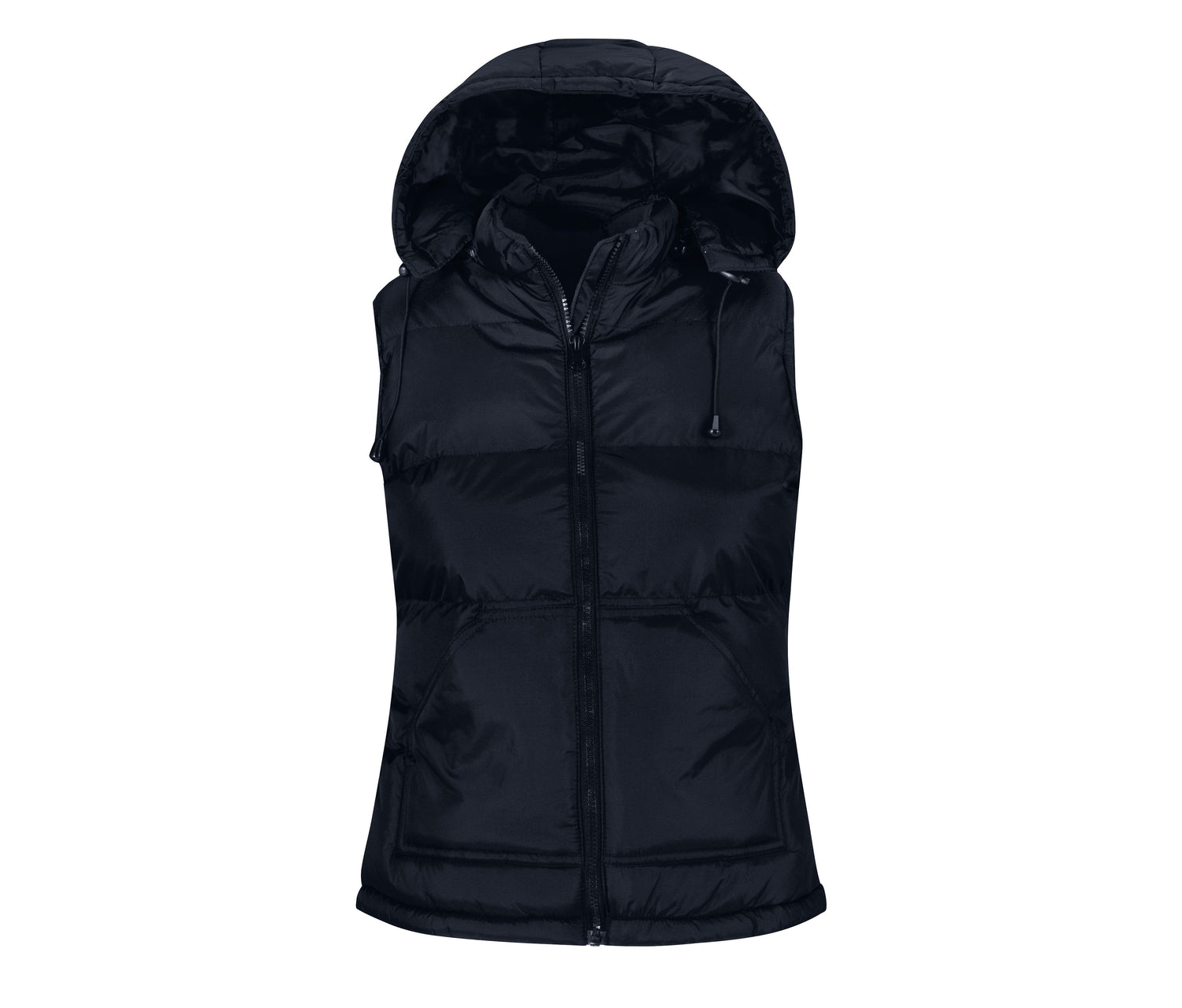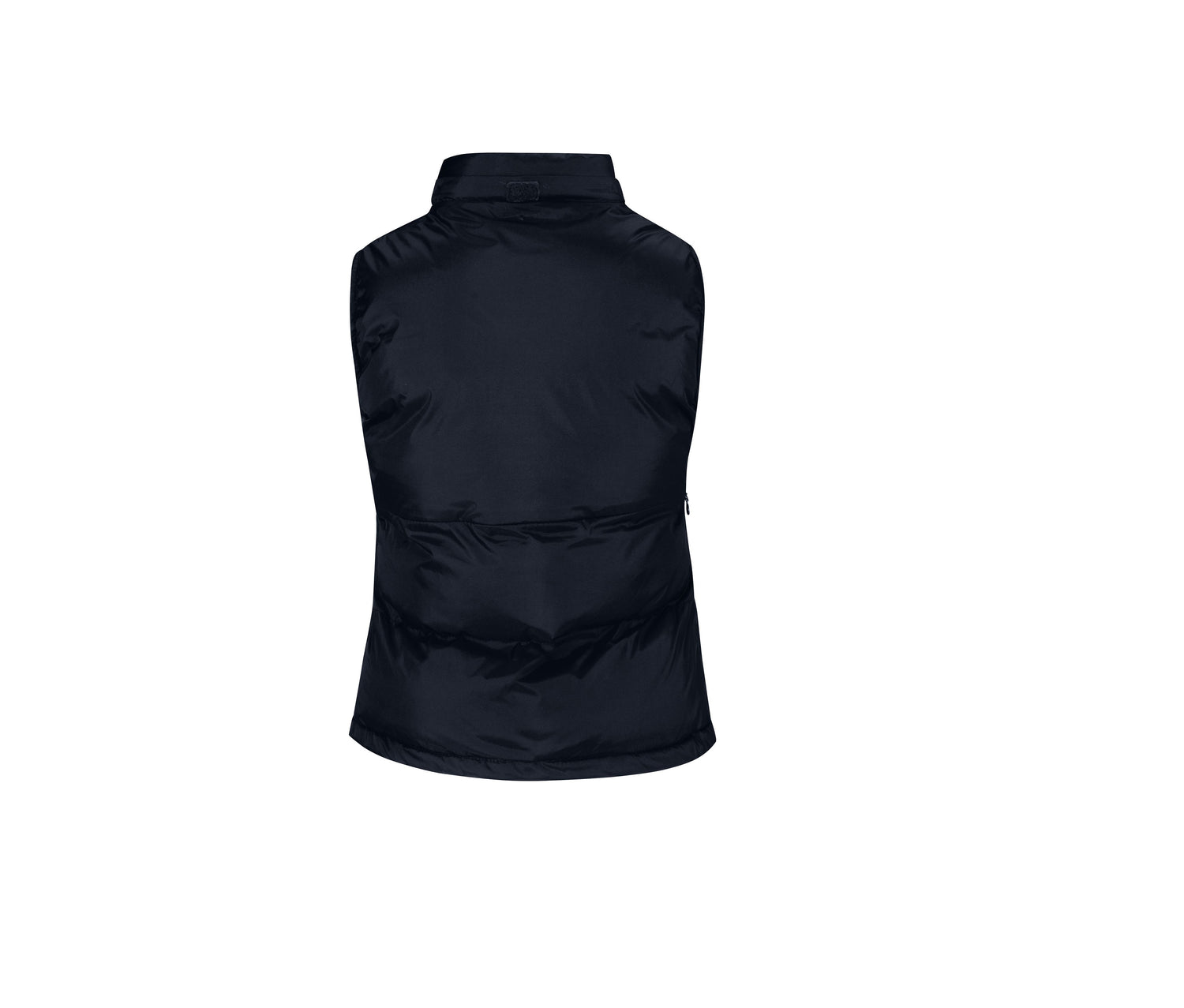 Quilted body warmer. Waterproof and windproof. Snug fit. Zippered back access for personalization.