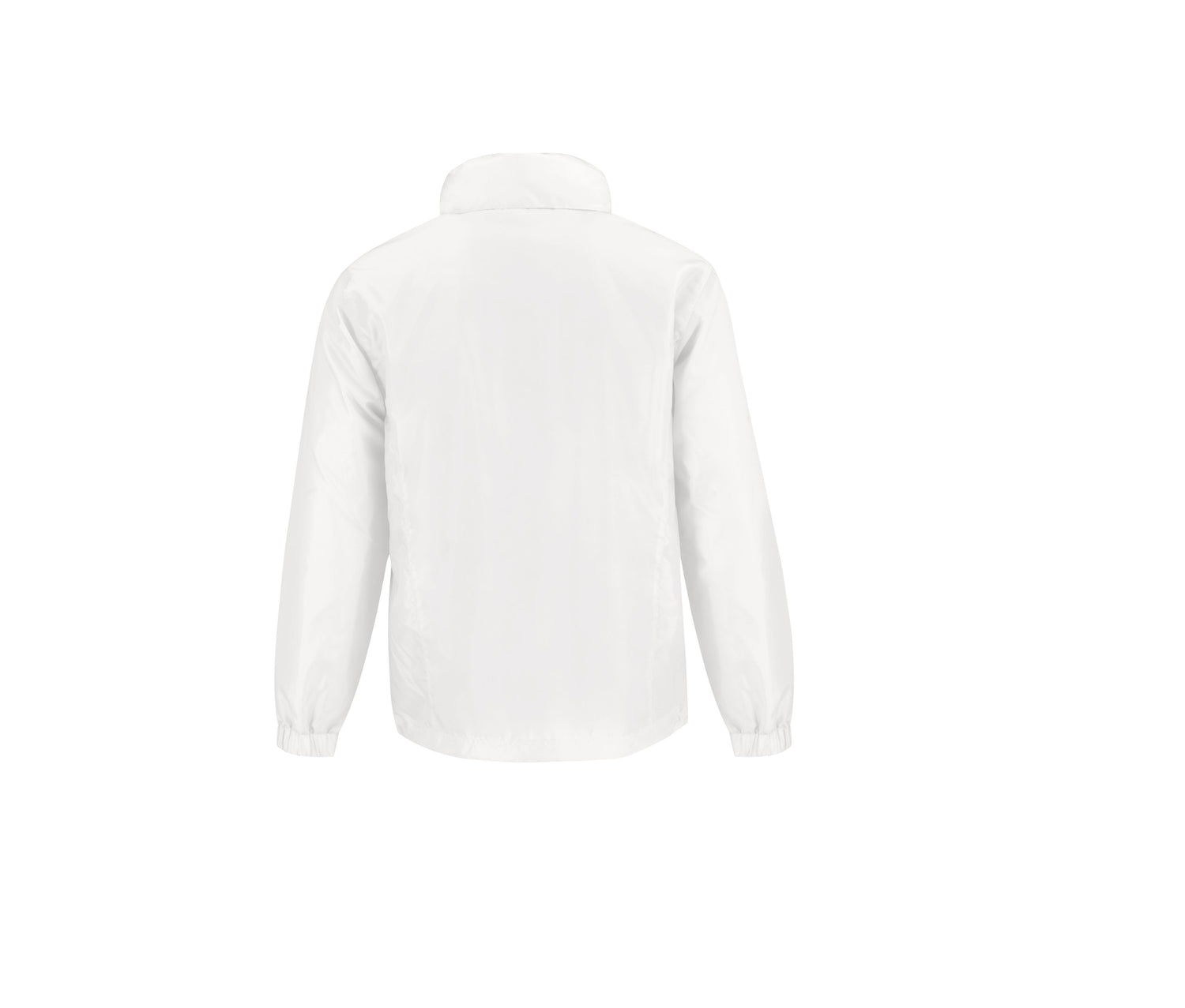 Wasserdichte Windjacke mit thermoisolierender Tricot-Fütterung. Ergonomische Kapuze im Kragen mit Klettverschluss. 2 Vordertaschen mit Klappe und 1 Geldbeuteltasche.
