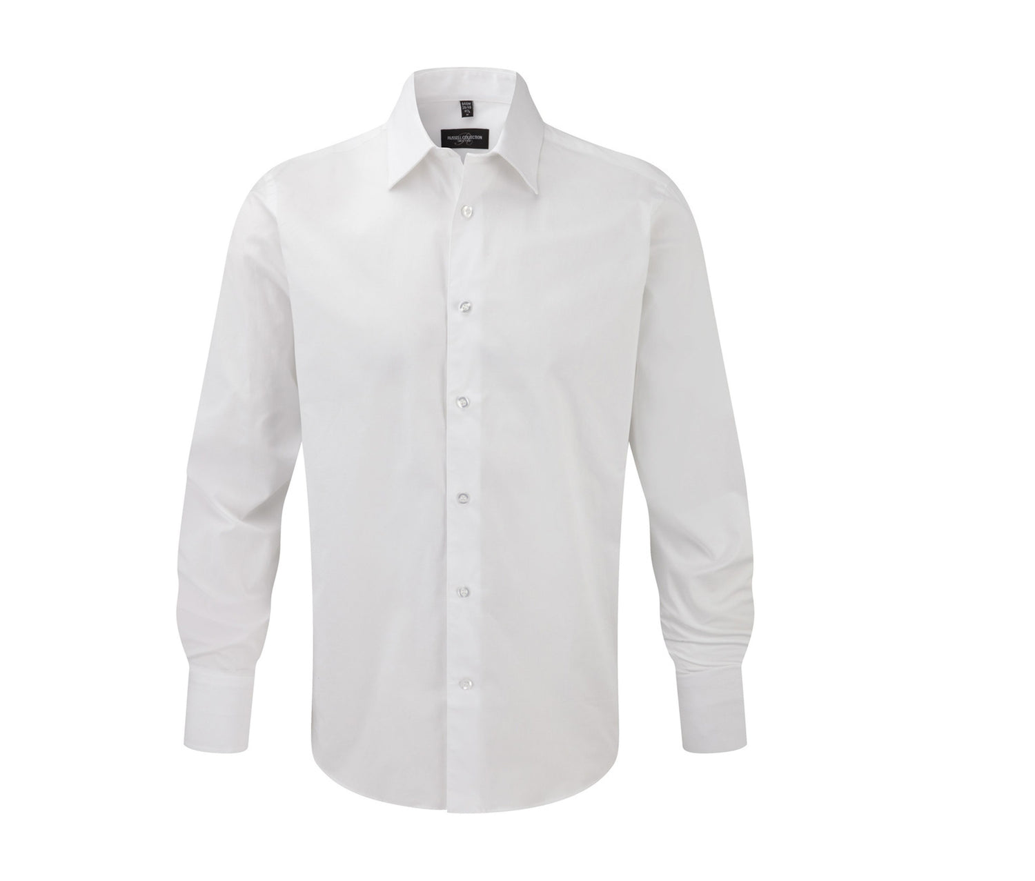 RUSSELL COLLECTION MEN'S LONG SLEEVE FITTED STRETCH SHIRT - S / WHITE ist auf Lager und wird versandt, sobald es wieder verfügbar ist