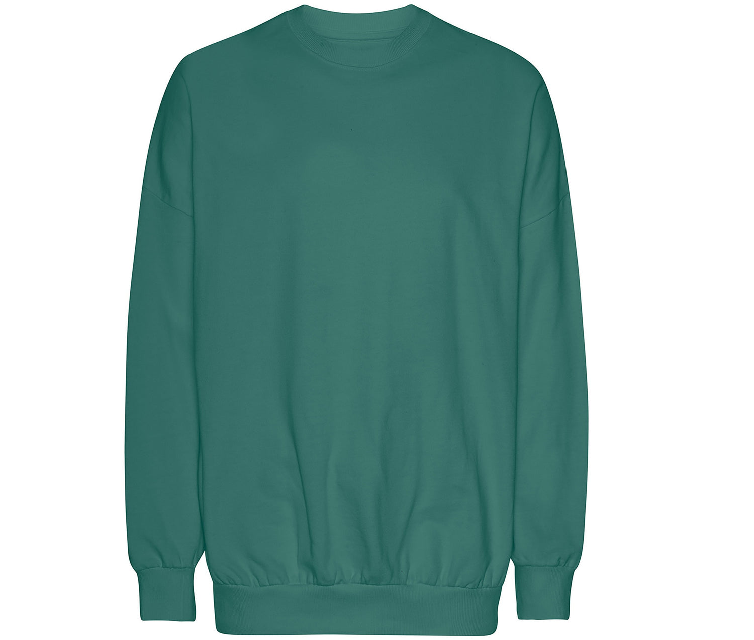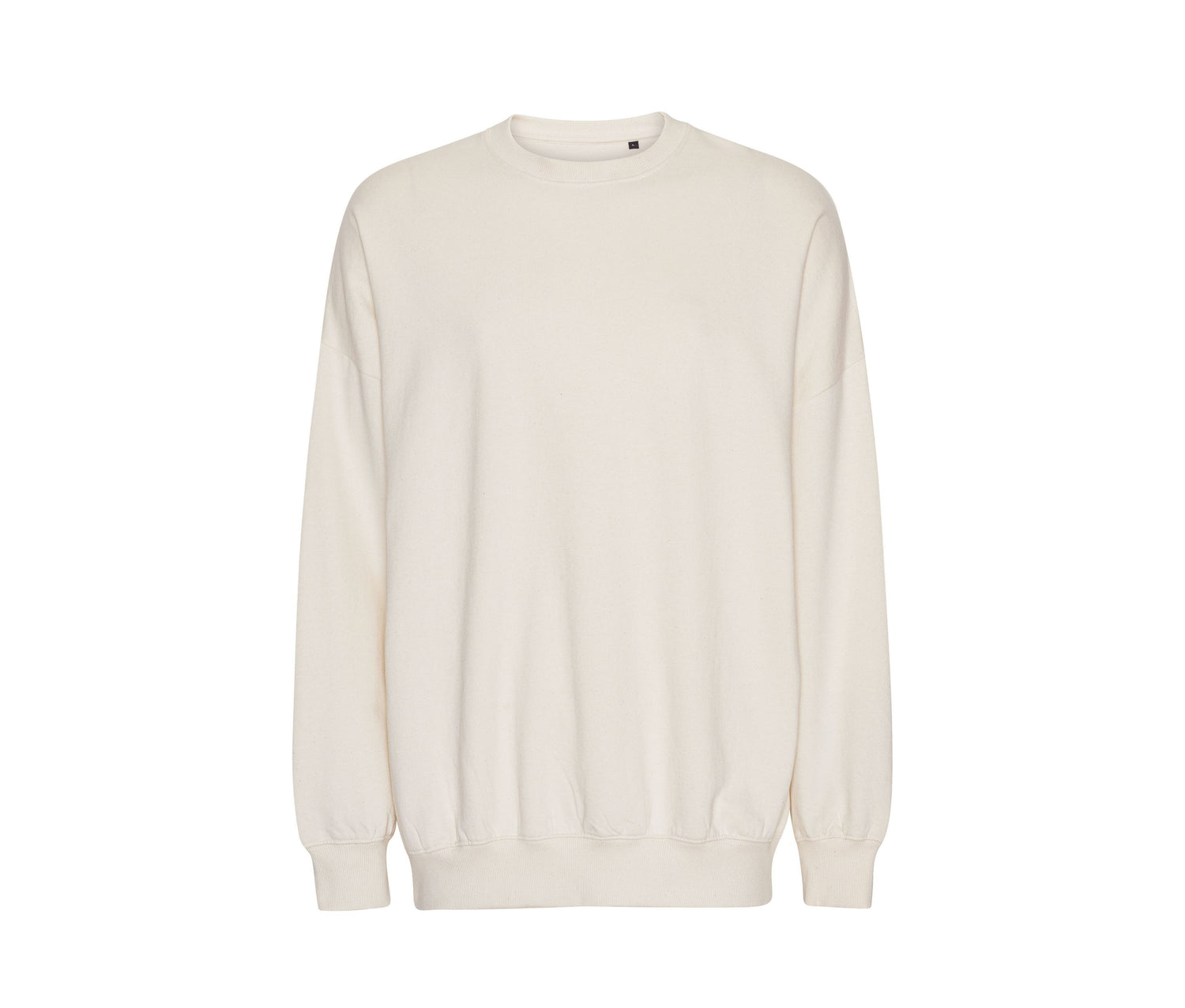 Überschnittene Schultern. Gestrickter Saum, Kragen und Ärmel. Gebürstetes Vlies.