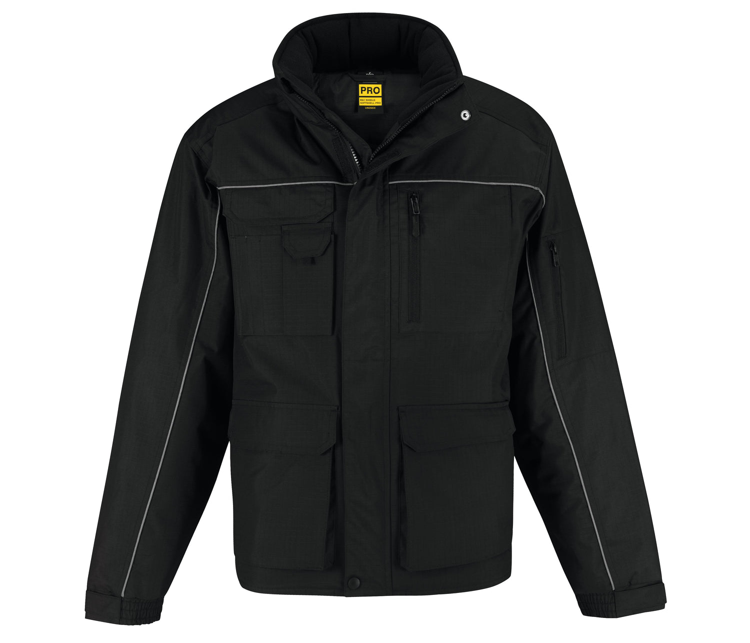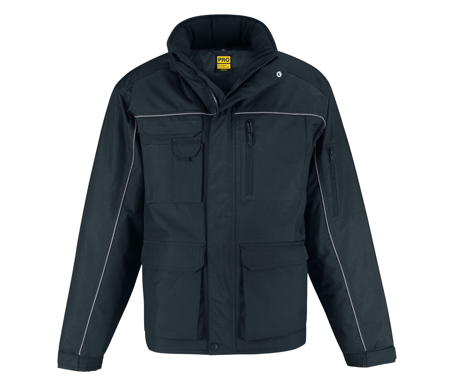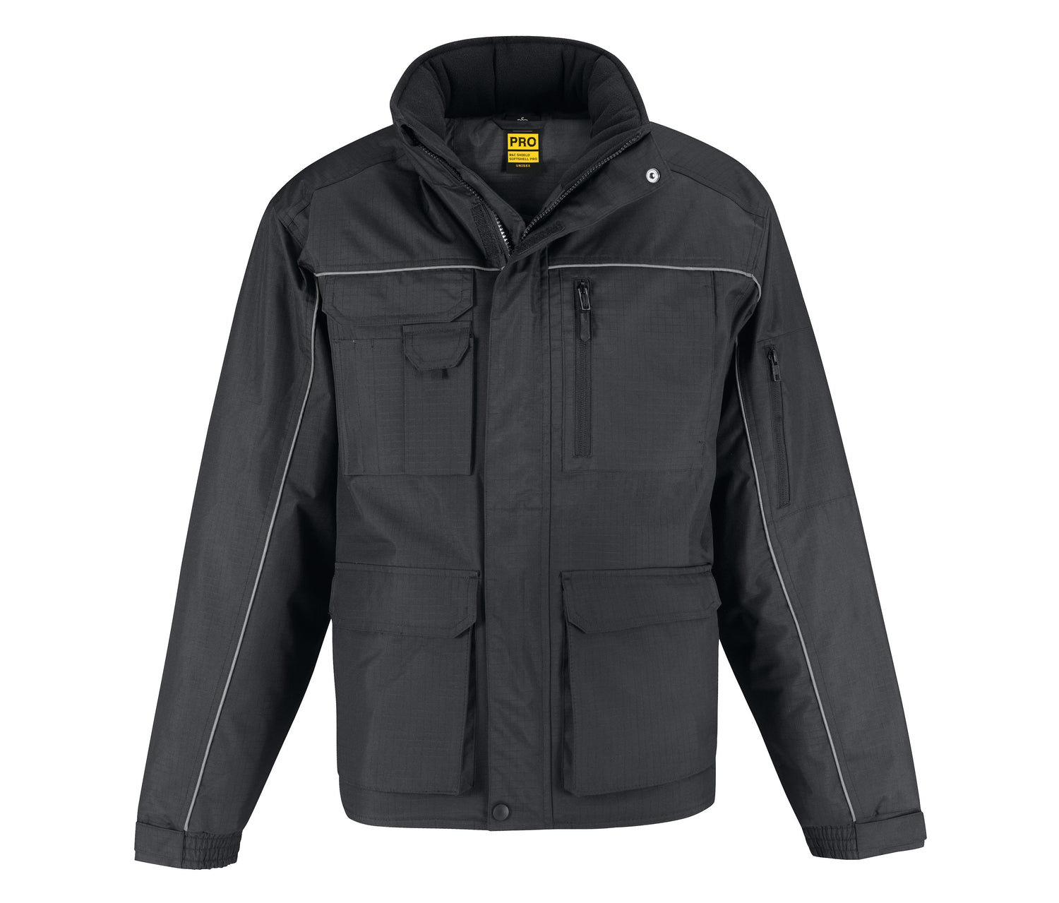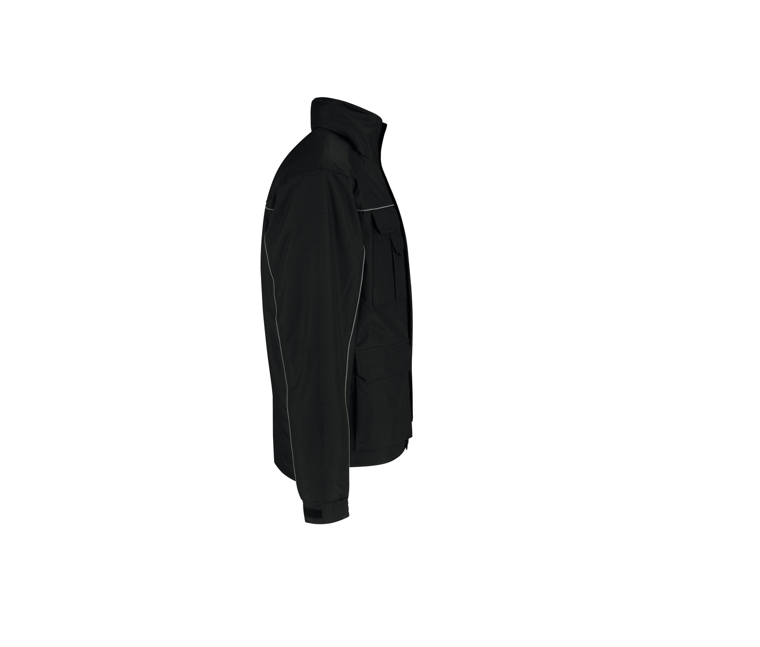 Wasserdicht (5000 mm) und winddicht. Gefütterte und wasserdichte Kapuze, im Kragen integriert, mit elastischem Band und zwei Stoppern. 12 Multifunktionstaschen.