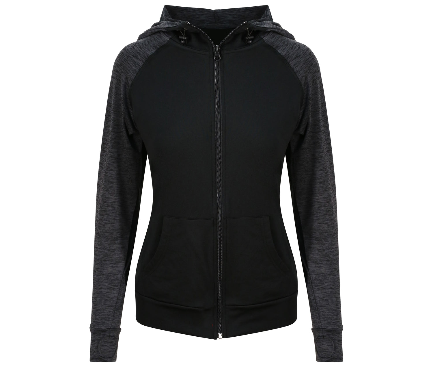 JUST COOL WOMEN'S COOL CONTRAST ZOODIE - XS / BLACK / BLACK SLATE MELANGE ist auf Lager und wird versandt, sobald es wieder verfügbar ist