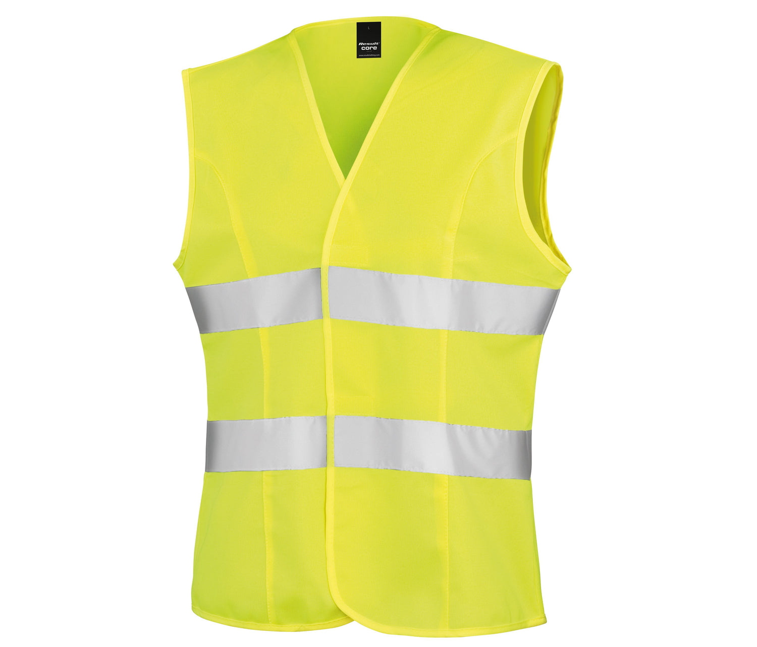 Ablösbares Etikett. Klettverschluss. Tailliert. 2 Reflexstreifen.